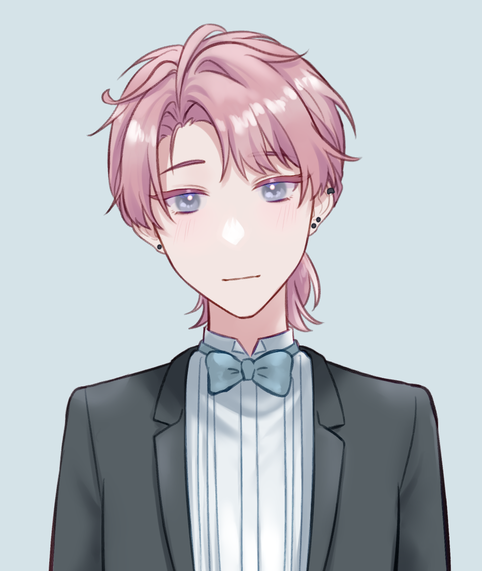 銀灰色眼睛,眼尾上挑。灰粉色及肩長髮會綁成小馬尾,留著長長的劉海遮住眼睛。平常戴著黑框眼鏡、穿著休閒,偶爾會看見穿著正裝的他把瀏海梳起,但因為反差太大了給人一種這是不同人的錯覺。