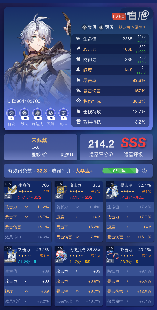 然後終於給我們家舉世無雙世界第一美麗帽子尖尖女士刷到一個好的攻擊鞋了!!!!全點在爆擊率上開心開心🥳