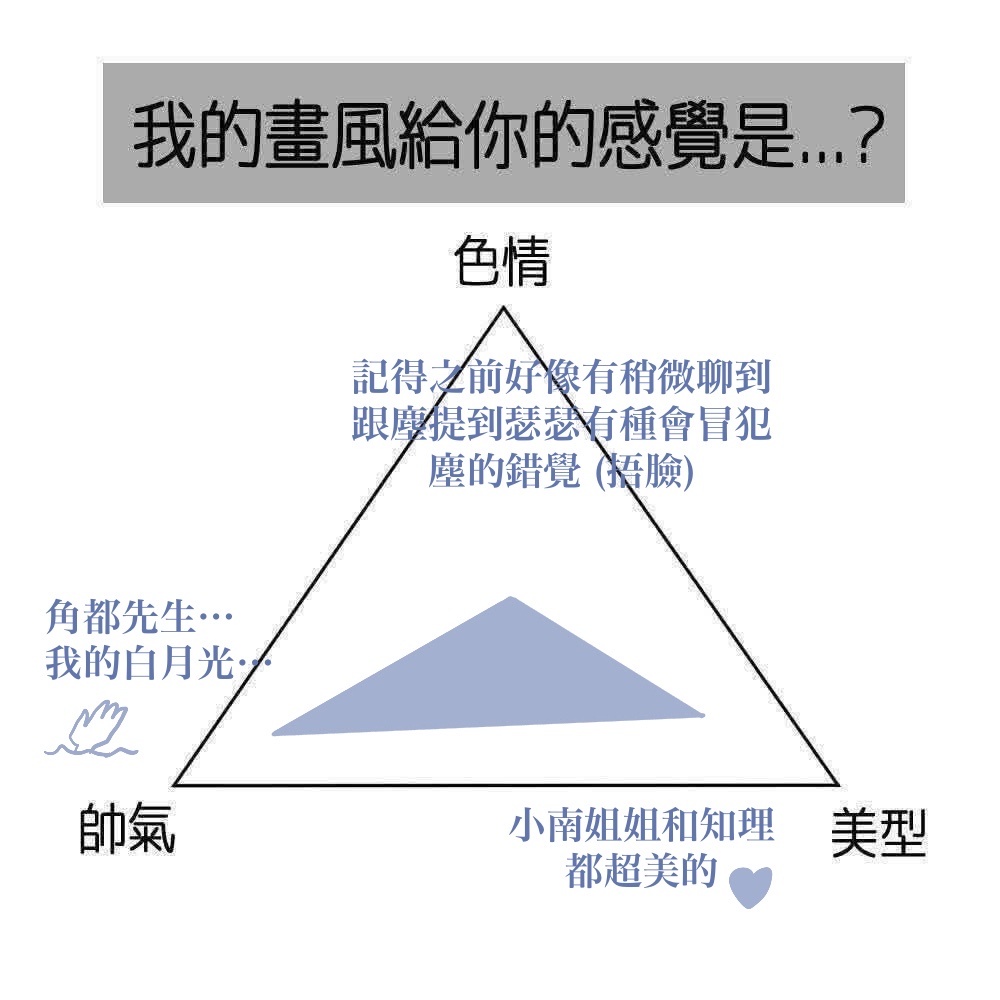 也因為我家一堆男人 每個都髒兮兮的(但我好愛) 感覺不太美型XD這裡覺得塵的畫風的感覺是這樣