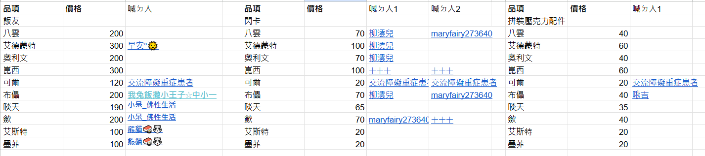 : 大家好~這邊周邊已經到台灣了,這兩天檢查完品項後就會寄出,在煩請大家依照賣場內的暱稱及品項下單,下單後再麻煩大家在本噗回應,確定為本人下單