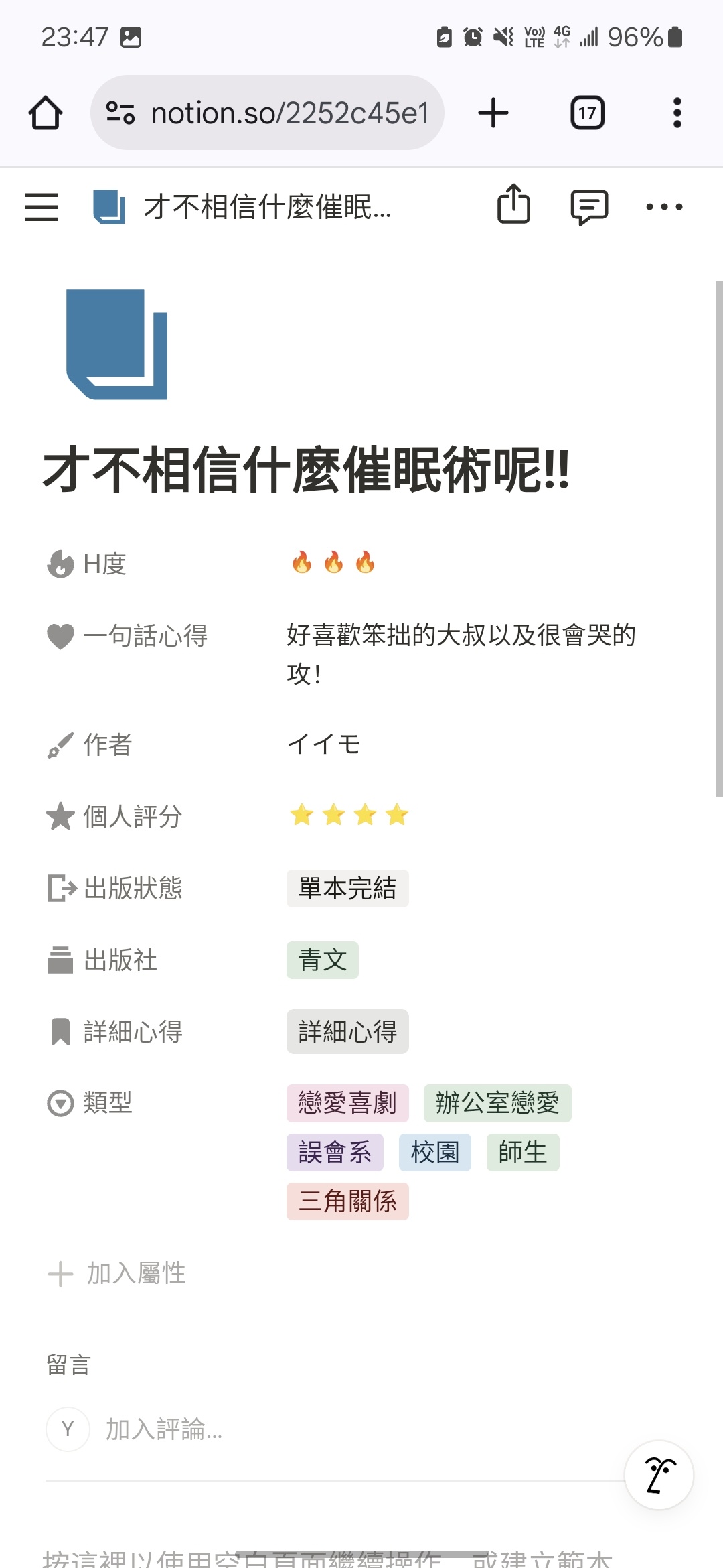 一直想說要整理去年買ㄉBL漫的閱讀心得,最近終於用notion開始整理起來ㄌ
