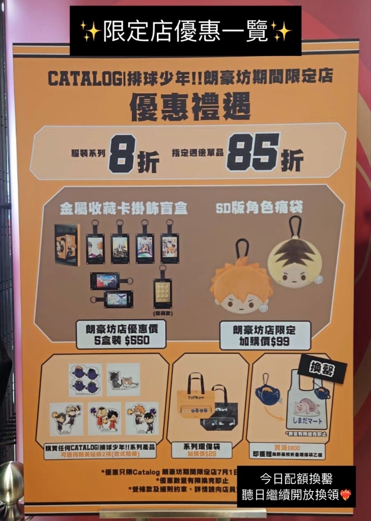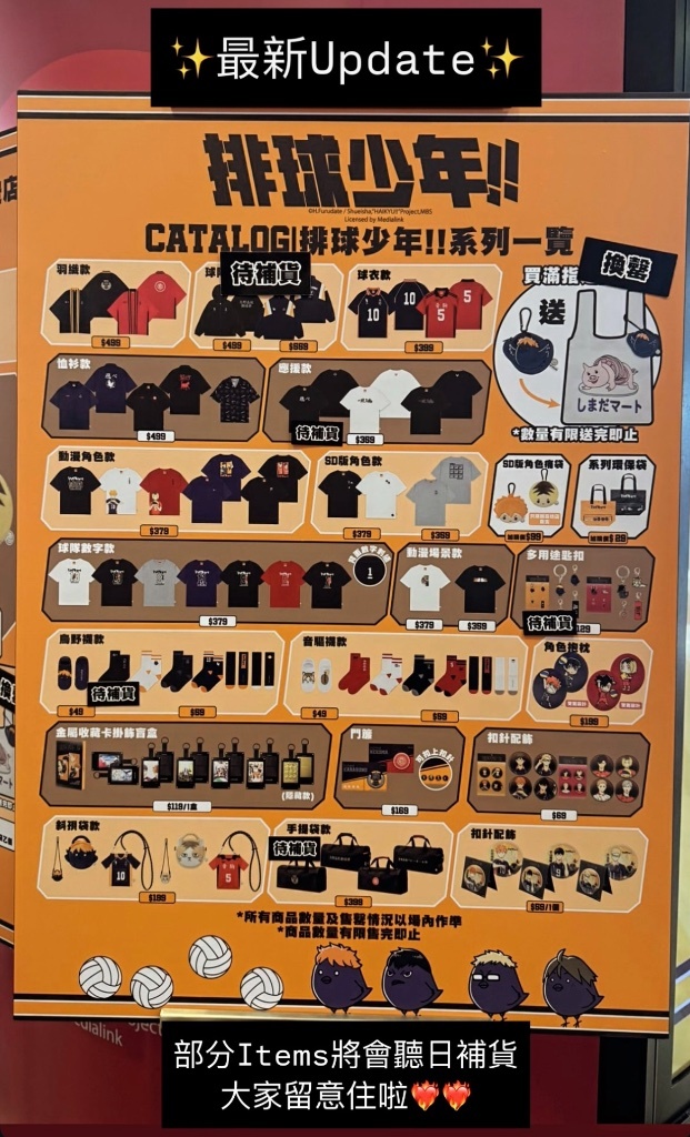 因搶不到第一天進場,這幾天留意著Catalog限定店的貨品狀況,星期五晚上終於輪到我們去會合排球少年