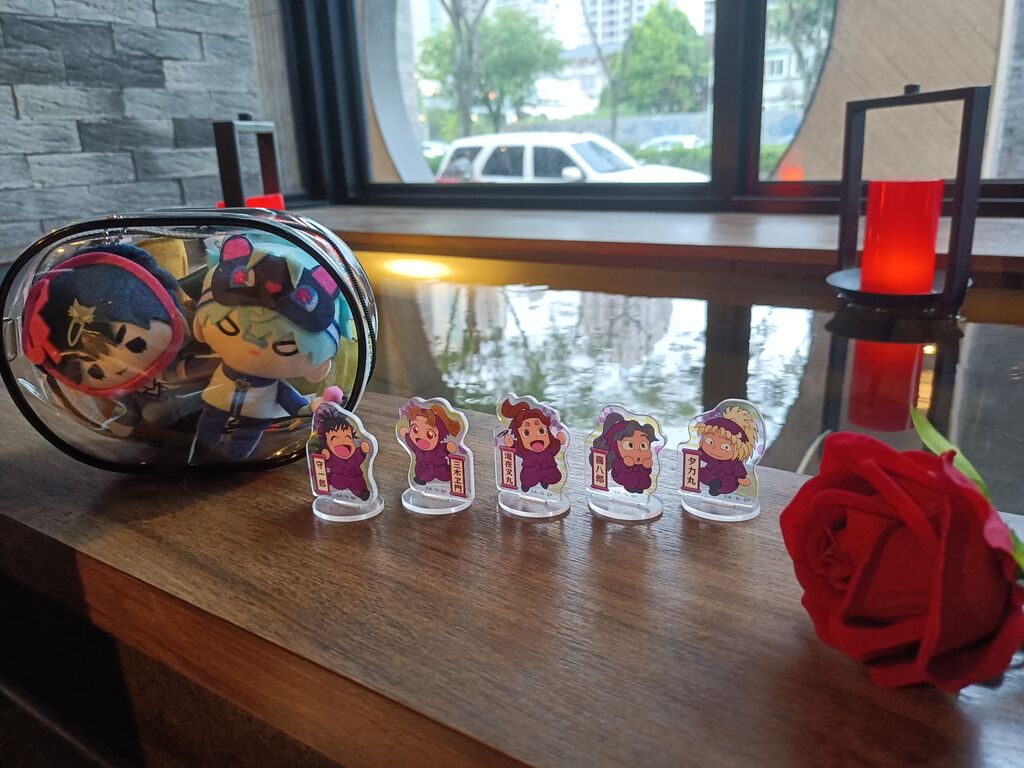 場後跟朋友約吃鍋,剛好座位旁邊有個小平台,我就把玫瑰花(?)擺上去,謝謝主辦給的花,超讚的