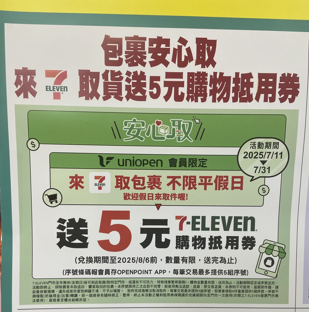 提醒一下下次的取貨購物金是從7/11號開始