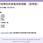 做了一個妖新小測驗,因為是趕在20分鐘做完的還有很多不足的地方,希望旅人可以幫噗主做做看測驗再把感想告訴噗主!!因為還是試用版,會每天持續更新,也會吸收旅人提供的題目! 再次感謝旅人們願意空出時間做題目~