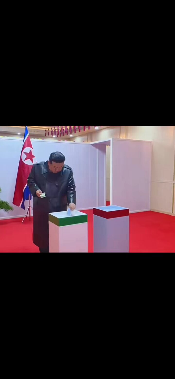 朝鮮實行全過程民主,即便是金正恩同志,也要親赴選區,投票選出自己滿意的議員來。同意的票投綠箱,反對的票投紅箱,一目瞭然,防止作弊。