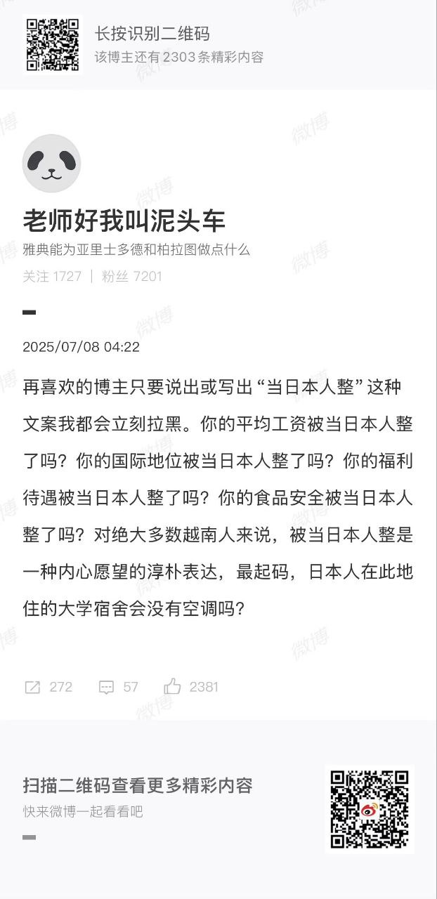 再喜歡的博主,只要說出或寫出“當日本人整”這種文案,我都會立刻拉黑。