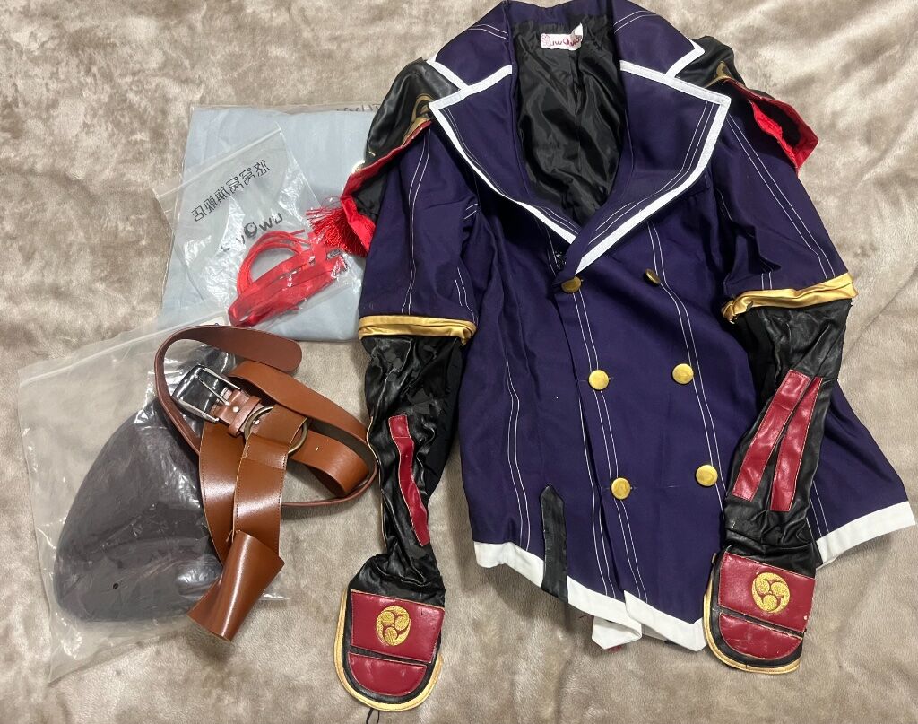 M碼 (紫袍)、白褲、假髮、武器(前賣家自製因有斷裂為贈送性質)