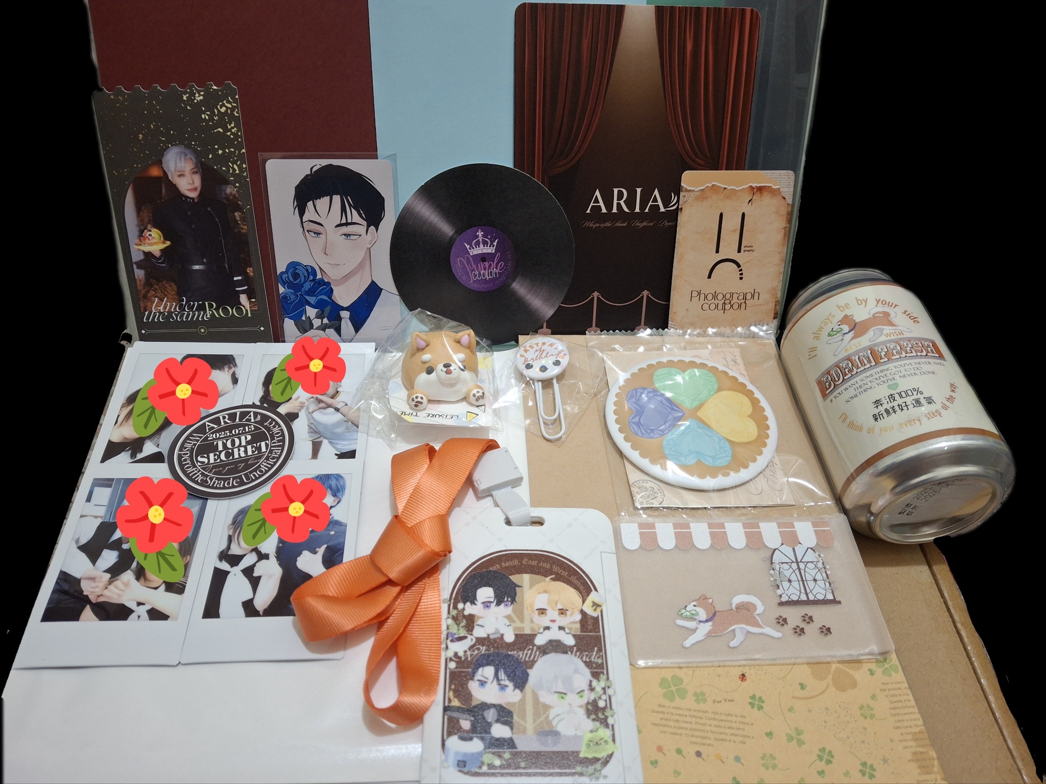 也厚臉皮地跑去私訊能不能賣貨便寄給我沒想到店長直接給我一整組外加范姜推特供(多兩個緞帶花和換成抹茶拿鐵粉),我真的是又驚又喜