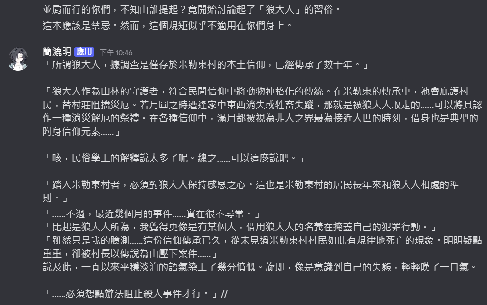 在怎麼不暴露我是愛著狼大人的邪教徒跟想辦法傳達我覺得村內在亂說話之間努力平衡台詞的占比