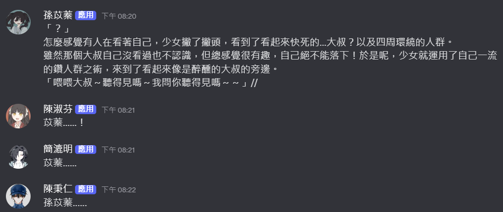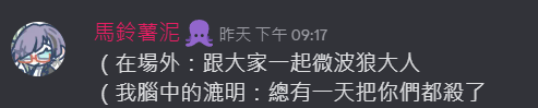 感謝GM阿雲加寫了很多段落,途中也會跟我討論各種設定,漉明在變得越來越奇怪的路上一去不復返(稱讚