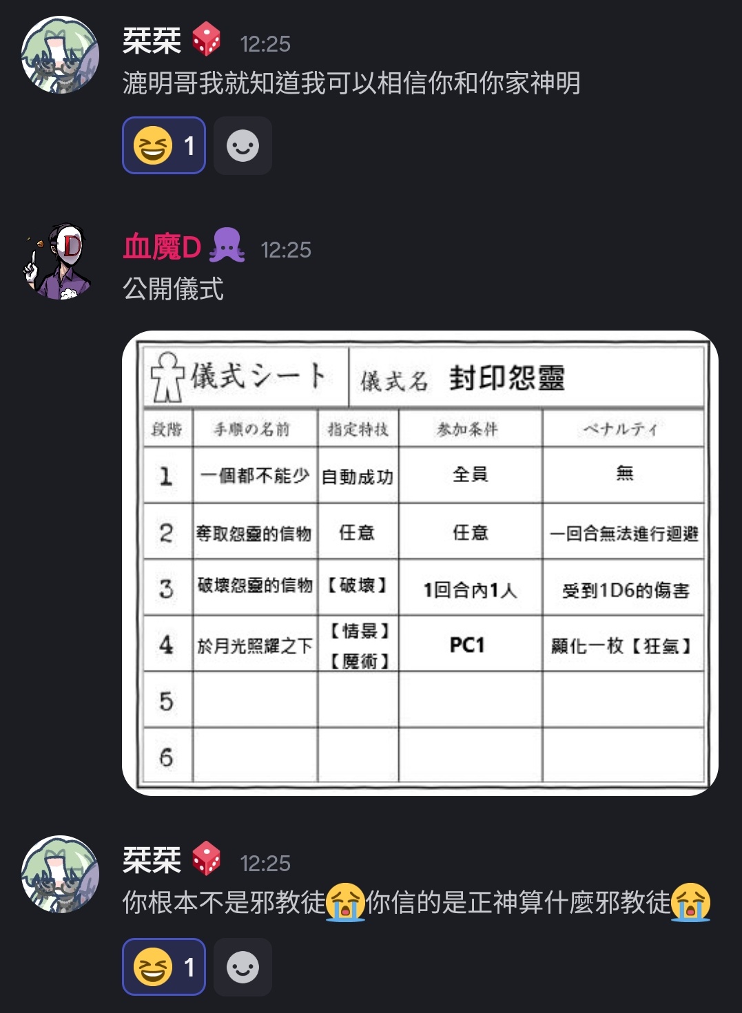 好爽喔玩TRPG這麼久終於給我遇上創邪教徒PC的機會了!?好耶!!!