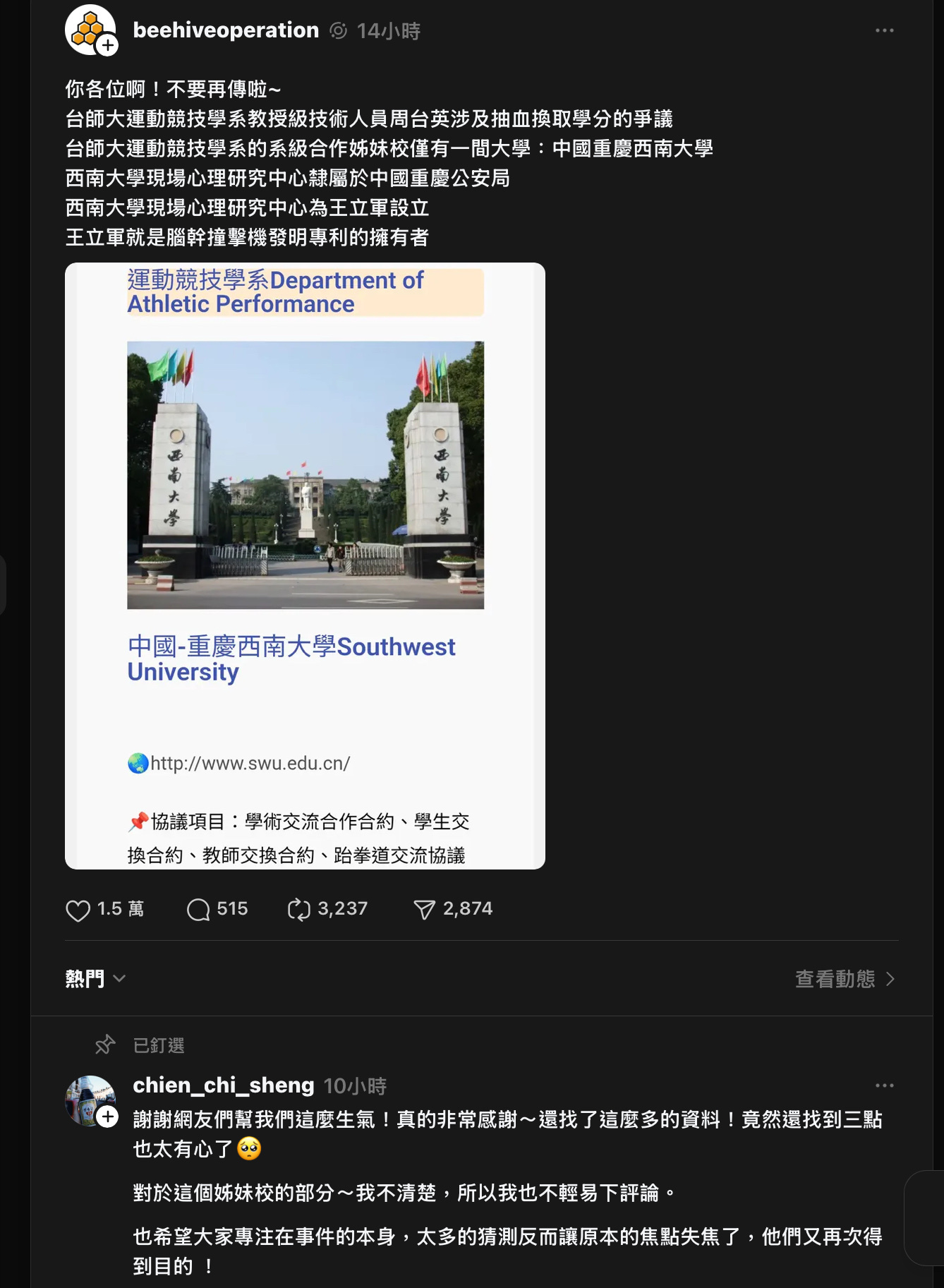 學生因為科展抄襲或自主學習不實都要取消入學資格了,這種嚴重違反學術倫理的行為大教授都沒有事?只推一個小教練出來擋?而且還只是停職兩年?這些人「大人」要給學生們什麼樣的榜樣?
