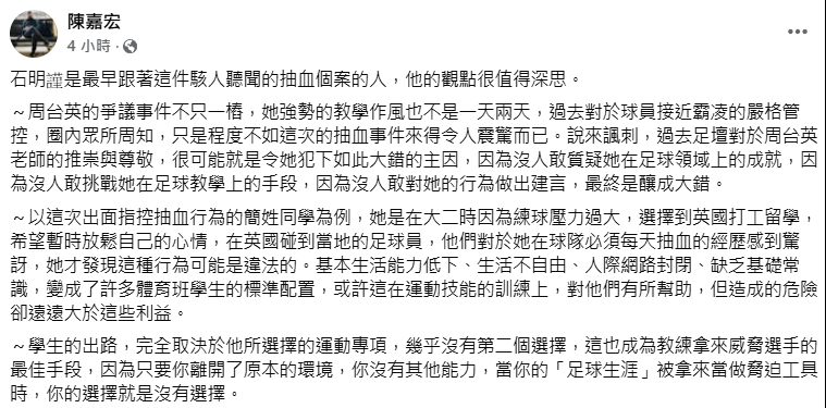 【Long Game】陳子軒/台師大女足抽血換學分事件,所有運動人都不該置身事外 - 報導者 The R...
