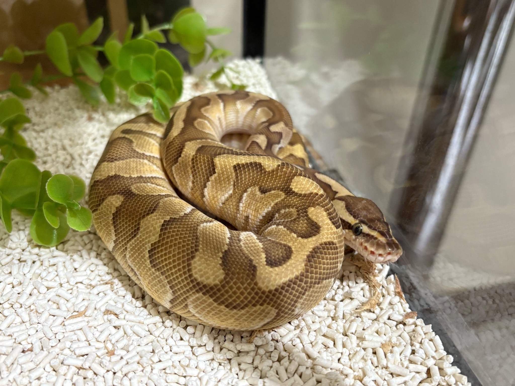 他是隻球蟒小男孩,個性超級溫和,很包容我喜歡對他搔癢的行為