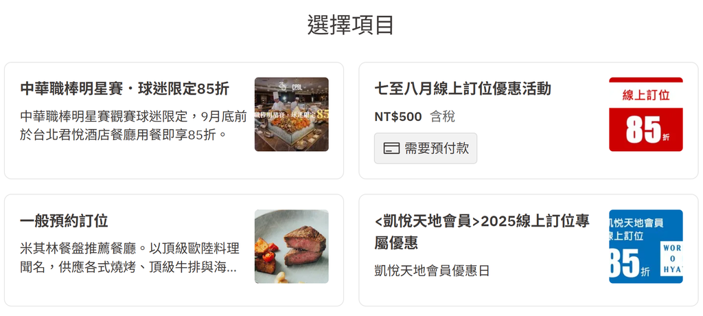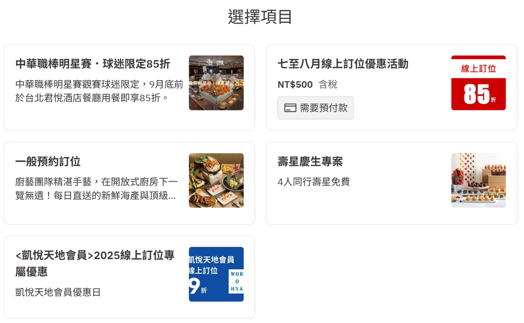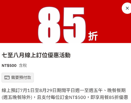 君悅七八月線上訂位85折哦,還有4人同行壽星免費
