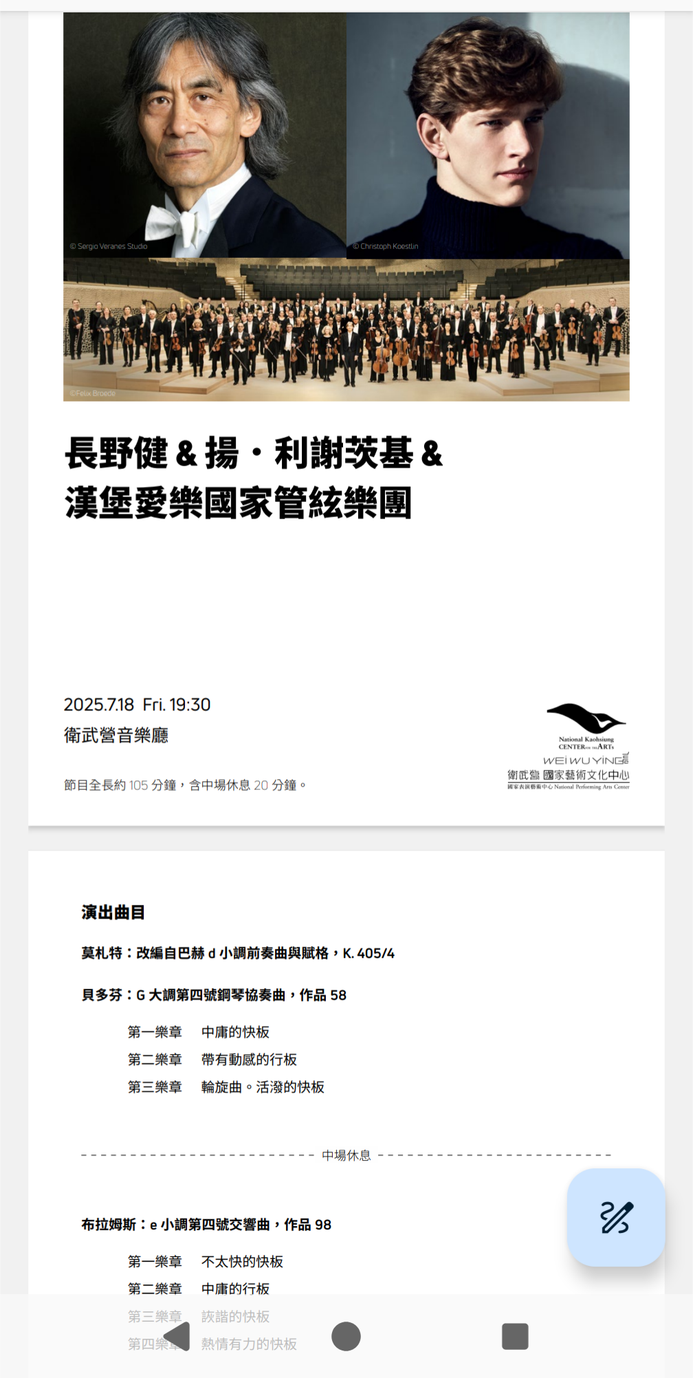 來聽漢堡愛樂國家管弦樂團音樂會(有點可惜的是原本協奏曲的鋼琴家皮耶絲因病取消演出)