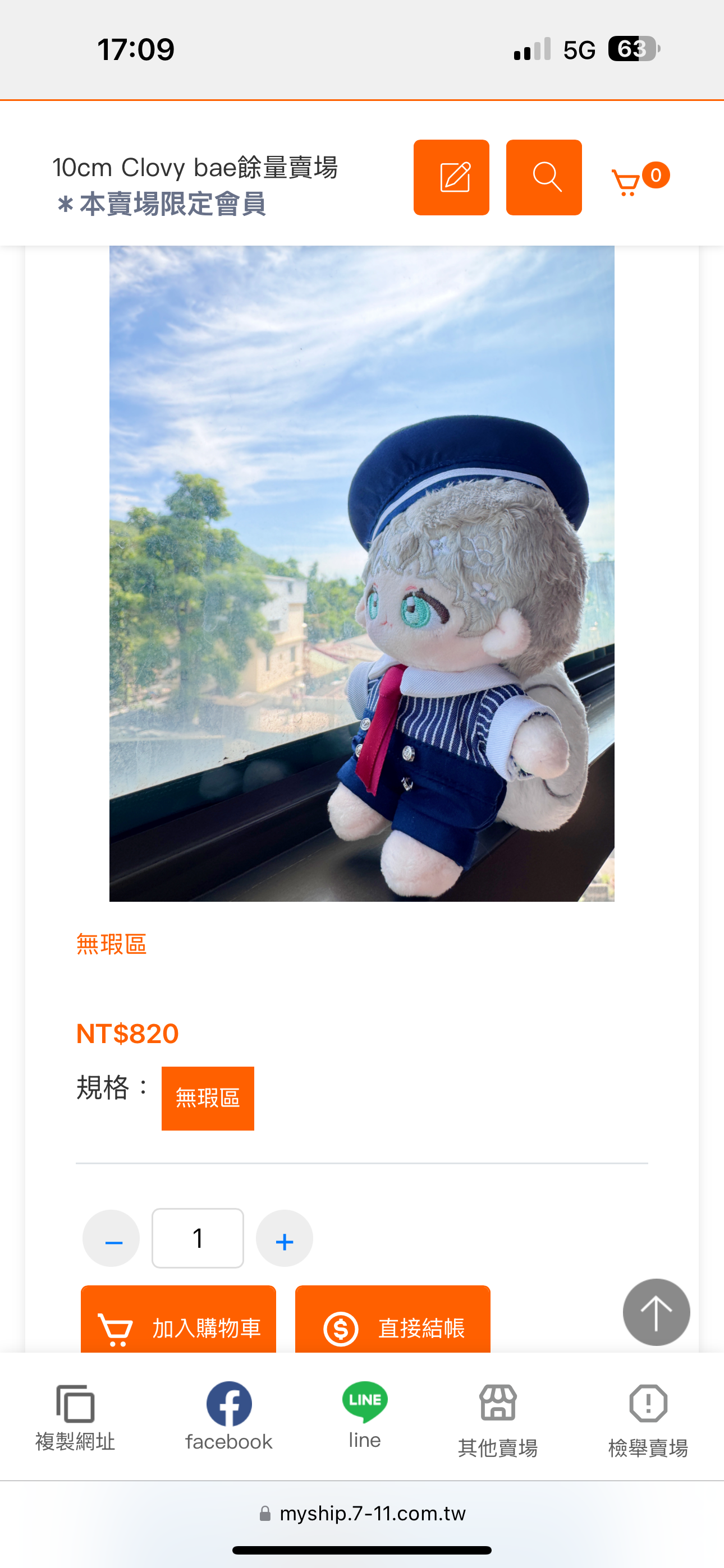 要求登入賣貨便會員,有欄位需填寫噗浪帳號(主頁或帳號都可以,僅供預防未取貨用)