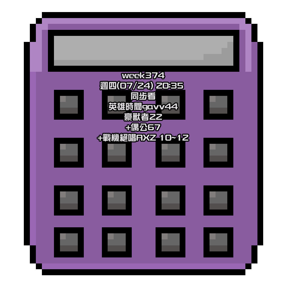 免費素材 フリー素材 像素 計算機 直播用貼圖使用OK(有無營利直播都OK) 加工編集OK 改色調色OK 商用利用OK 自做發言不可 二次發布不可 &雙命周表 現在雙命勢VT最原始周表 雙命裂第week374週 雙命的每周像素練習