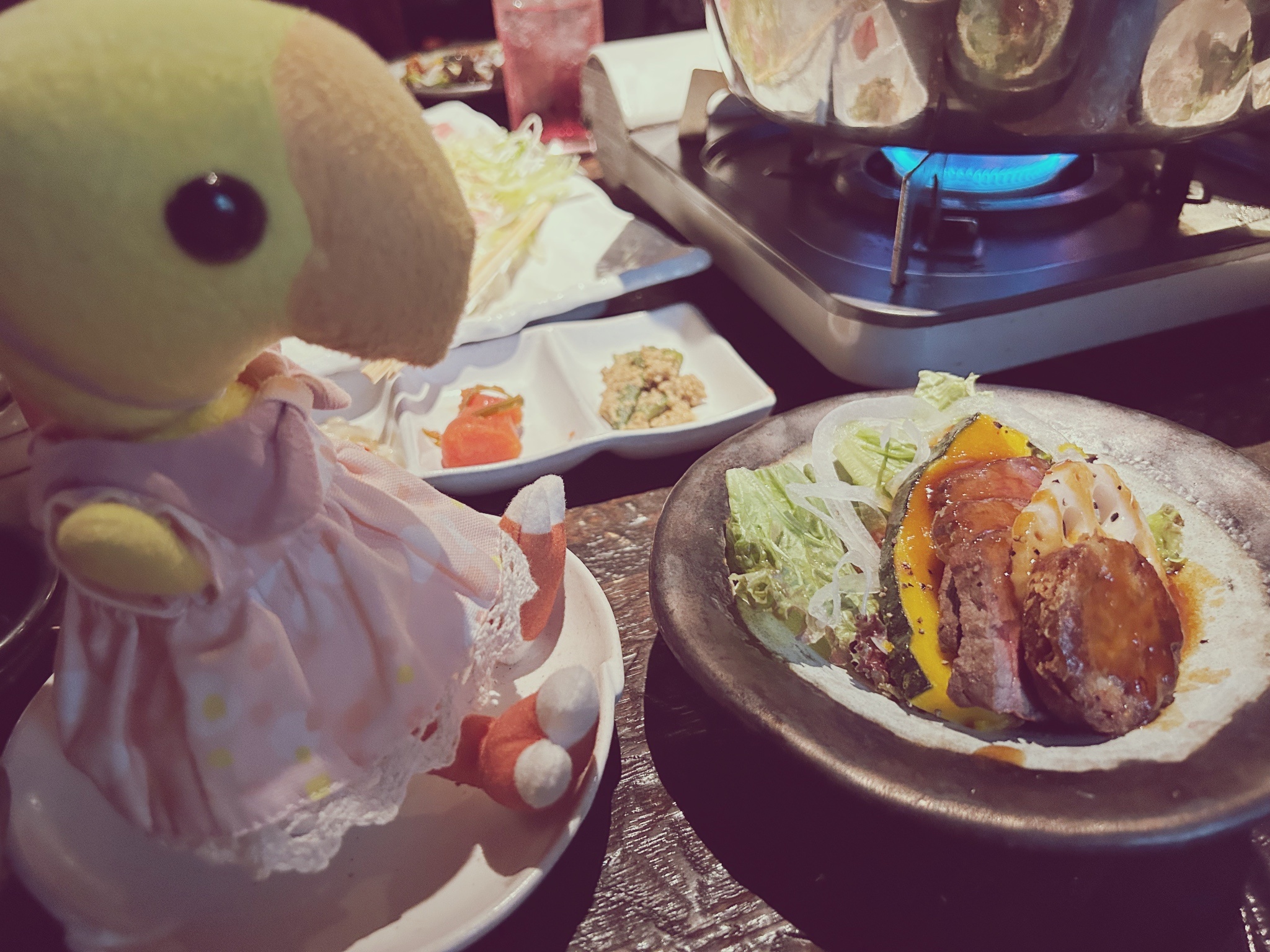 好吃ㄉ烤牛肉,配有鮟鱇魚肝、蓮藕、南瓜