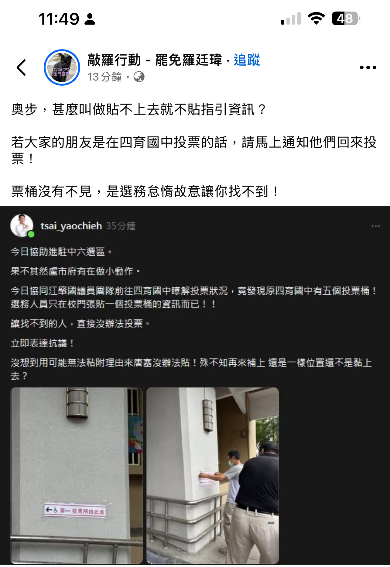 若大家的朋友是在四育國中投票的話,請馬上通知他們回來投票!