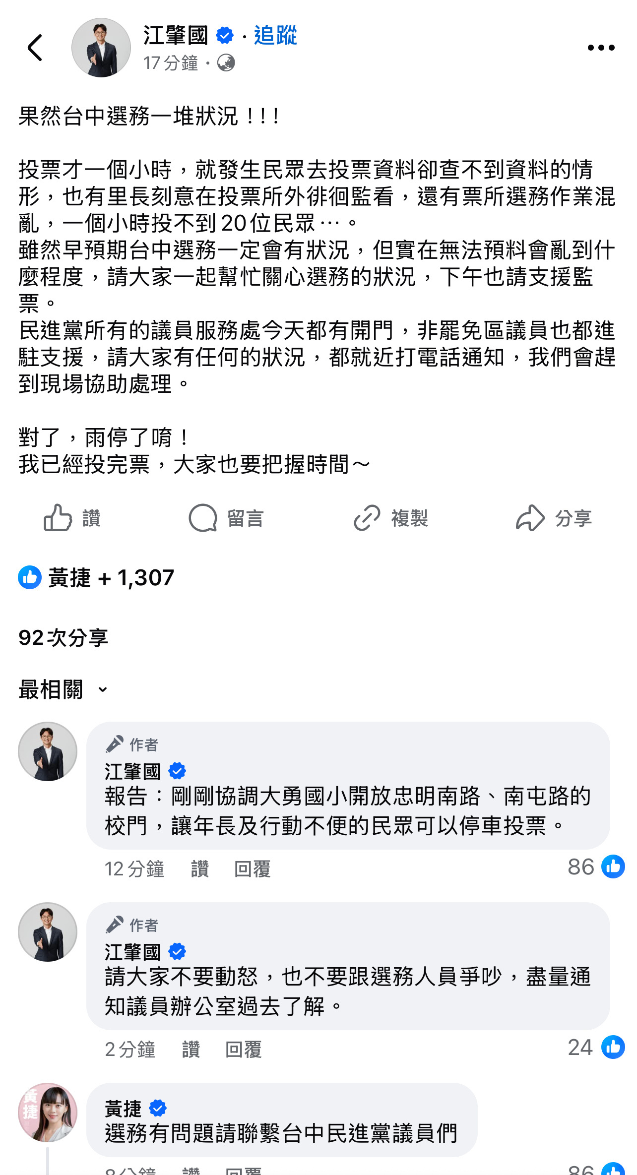 強者我朋友們去台中監票