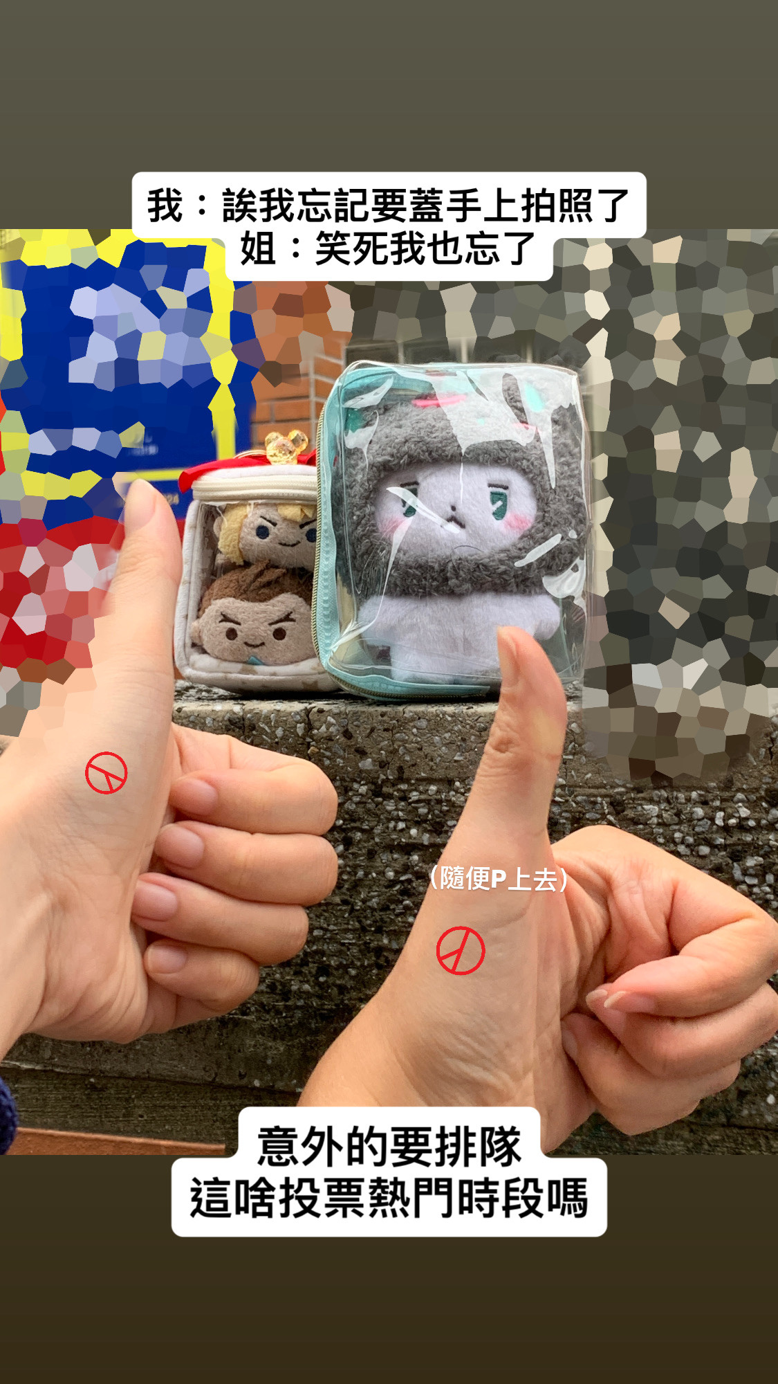 哈哈跟姐投完出來發現兩個人都忘記蓋章