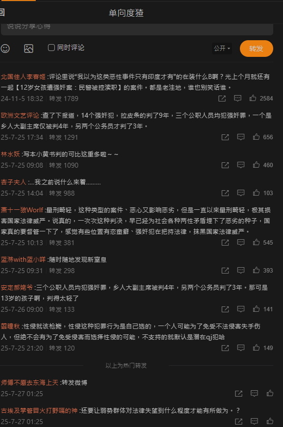 「湖南13岁女孩遭14人性侵,其中包括三名公职人员,分别是油溪乡人大副主席,审计局工作人员,交通局工作人员...不知道的还以为是印度新闻呢」