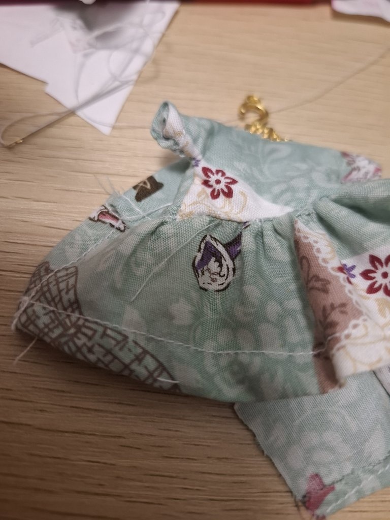 噗主做小衣服--如果容易卡進針板可以用薄紙墊著一起車,車完再撕掉紙。