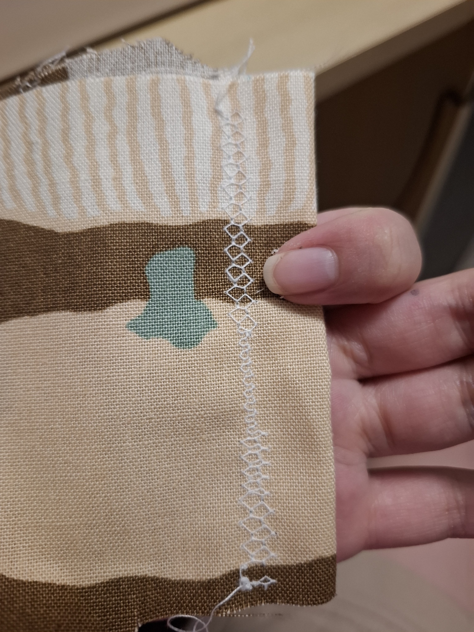 目前的困擾是一開始跟最後的打結 這台的原地鎖邊好像固定五下 以娃衣來說會很大一坨