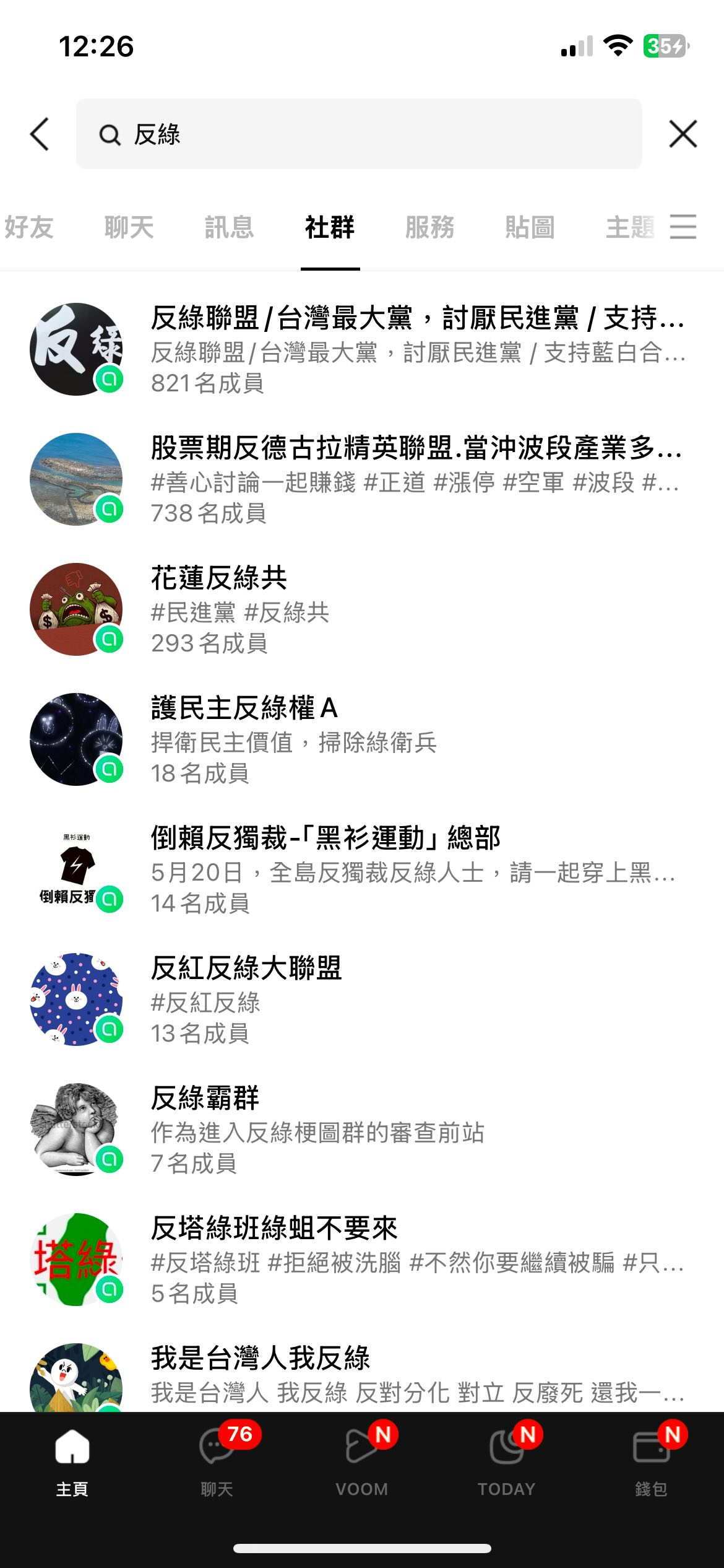 請看看目前情況(下圖),一堆在攻擊執政黨的群組。 人數只要超過300人的群,每天訊息量通常是破萬的,在洗各個年齡層的人。