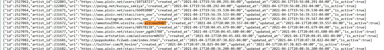 那個繪師列表裡面有一個 "is banned":"false" 應該就是指還沒填過這個這個表單的繪師們