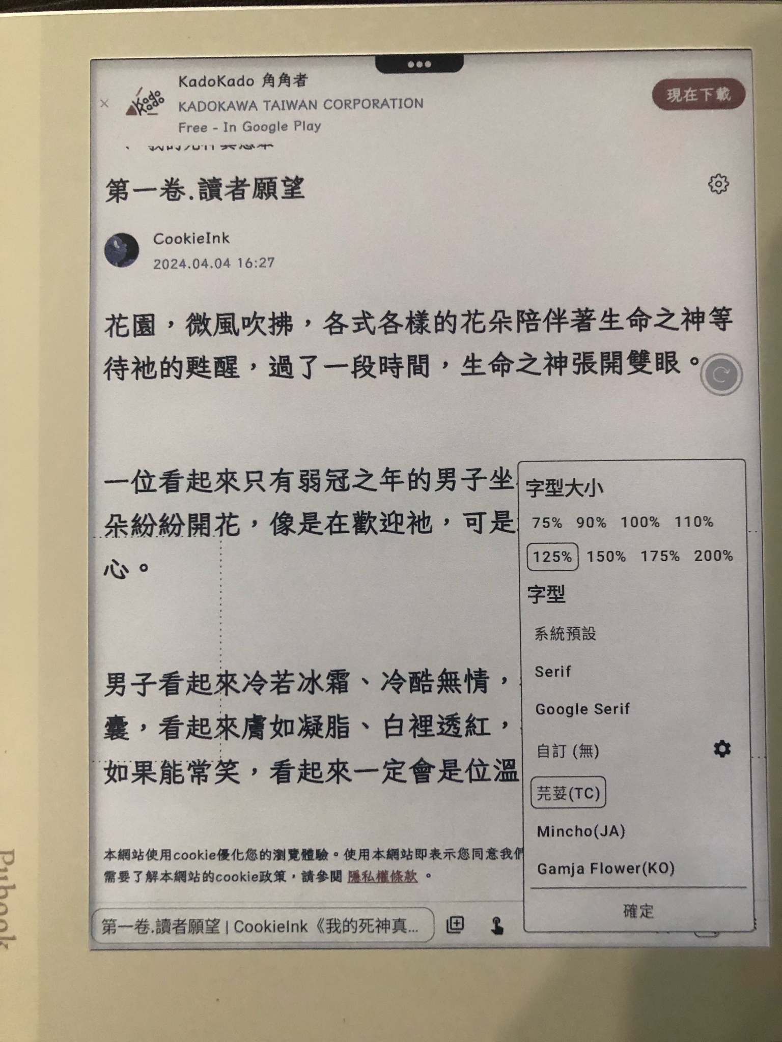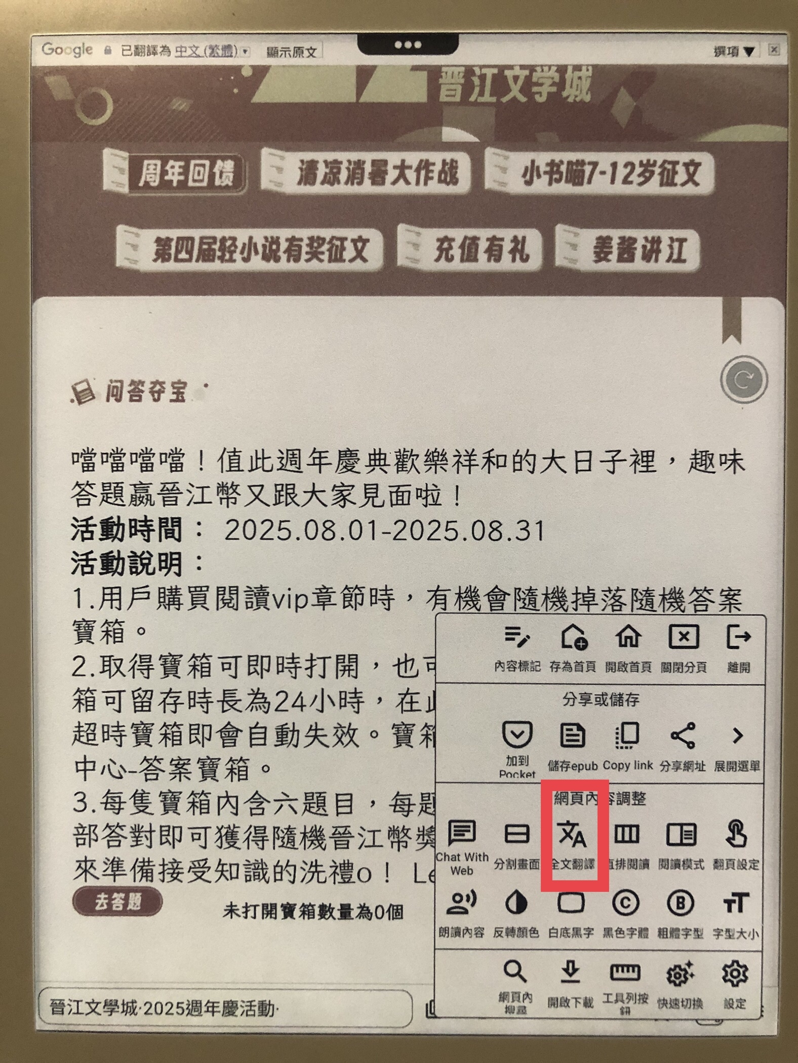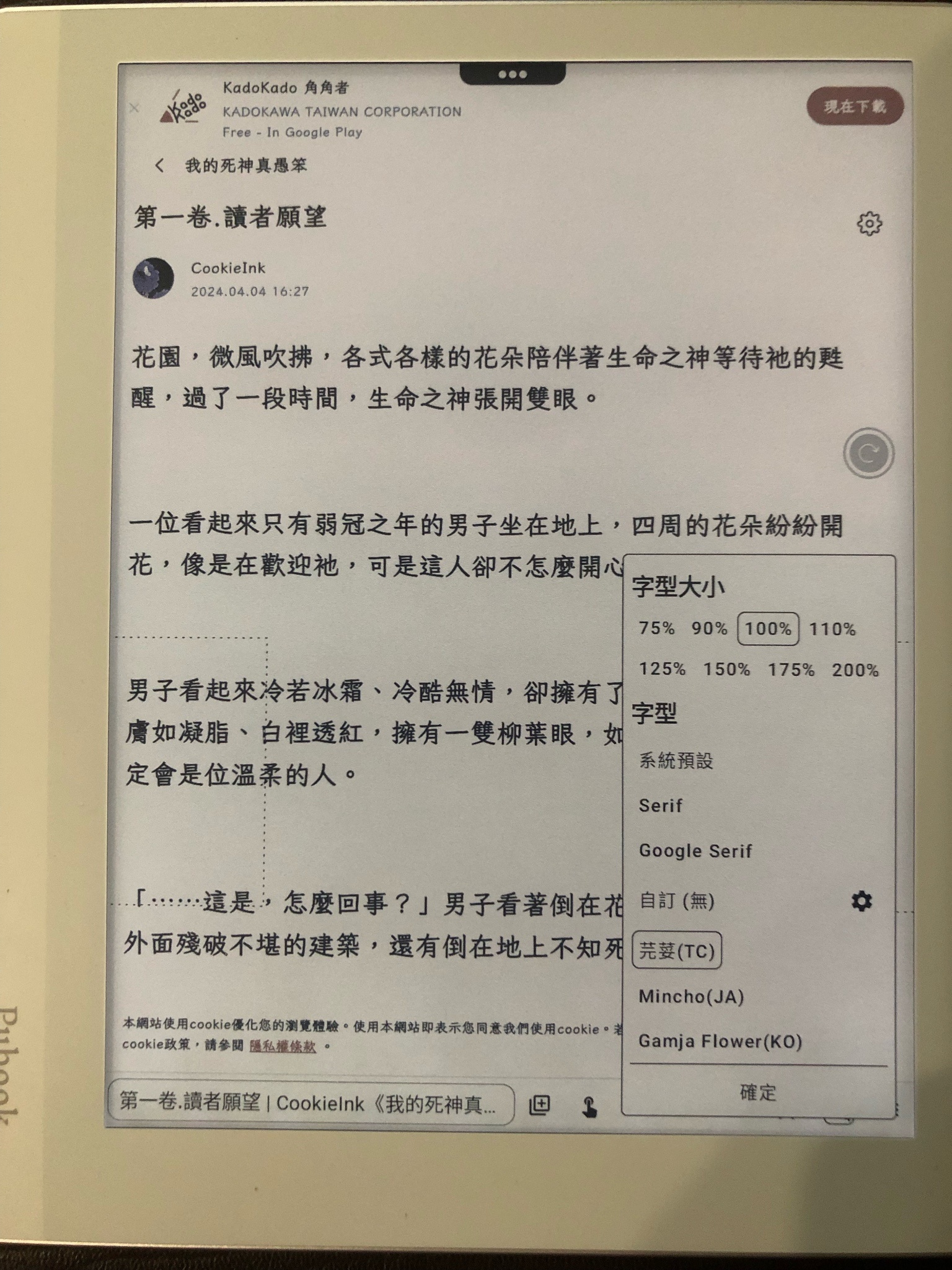 對了,我示範用的瀏覽器是為閱讀器設計的einkbro,不知道你是不是用這款?如果不是的話推薦用這個,翻小說網頁時不必上滑,可以用翻頁的方式看