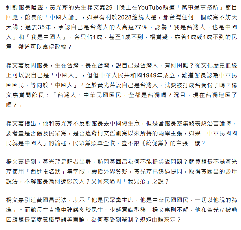 黃光芹遭館長砲轟 楊文嘉反問:說自己是台灣人很難? - 政治 - 自由時報電子報