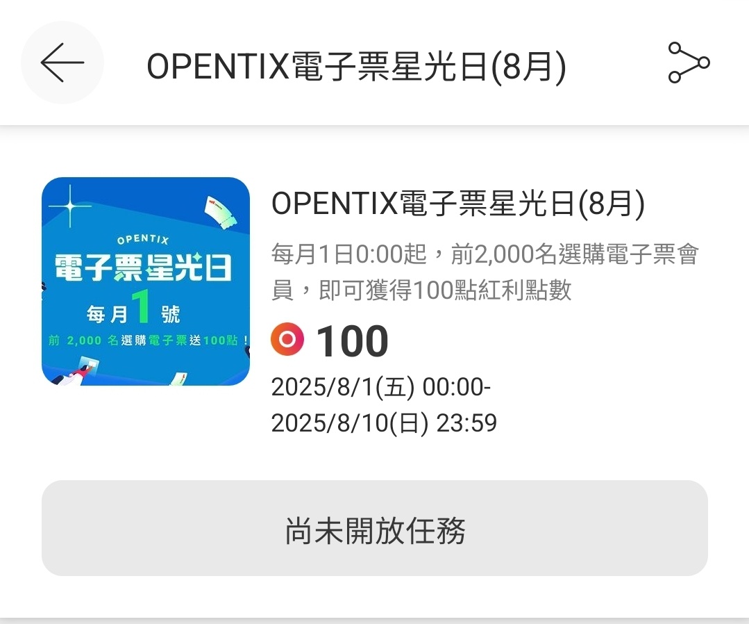 opentix新活動是前2000名電子票就送100點