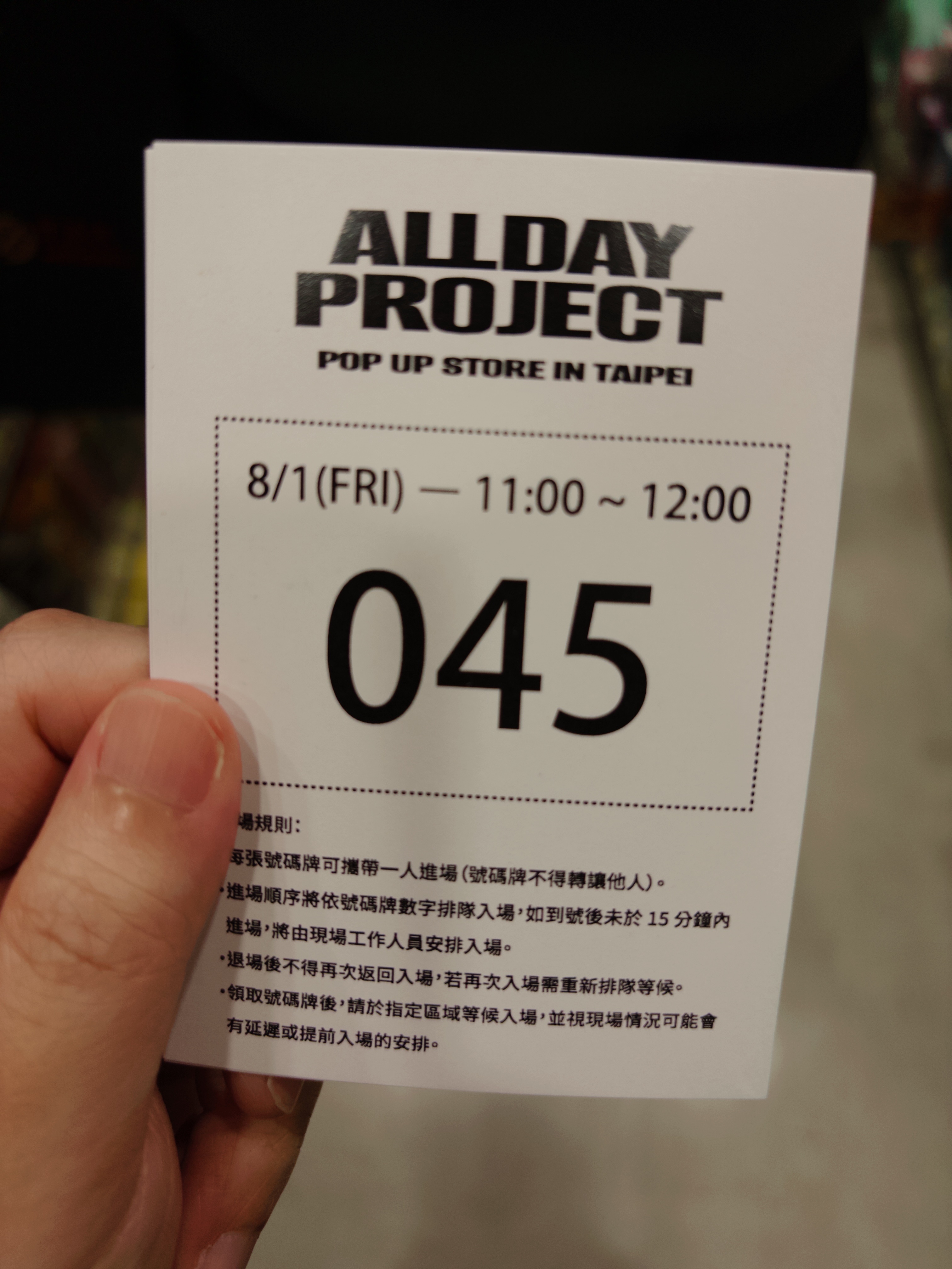 我跟伴侶大概9點準時到阪急門口報到,那時前面目測大約有30幾個人(當然少不了代購阿嬤🙂),稍微等了一下10點就準時發號碼牌了。到這裡都還體驗良好⋯
