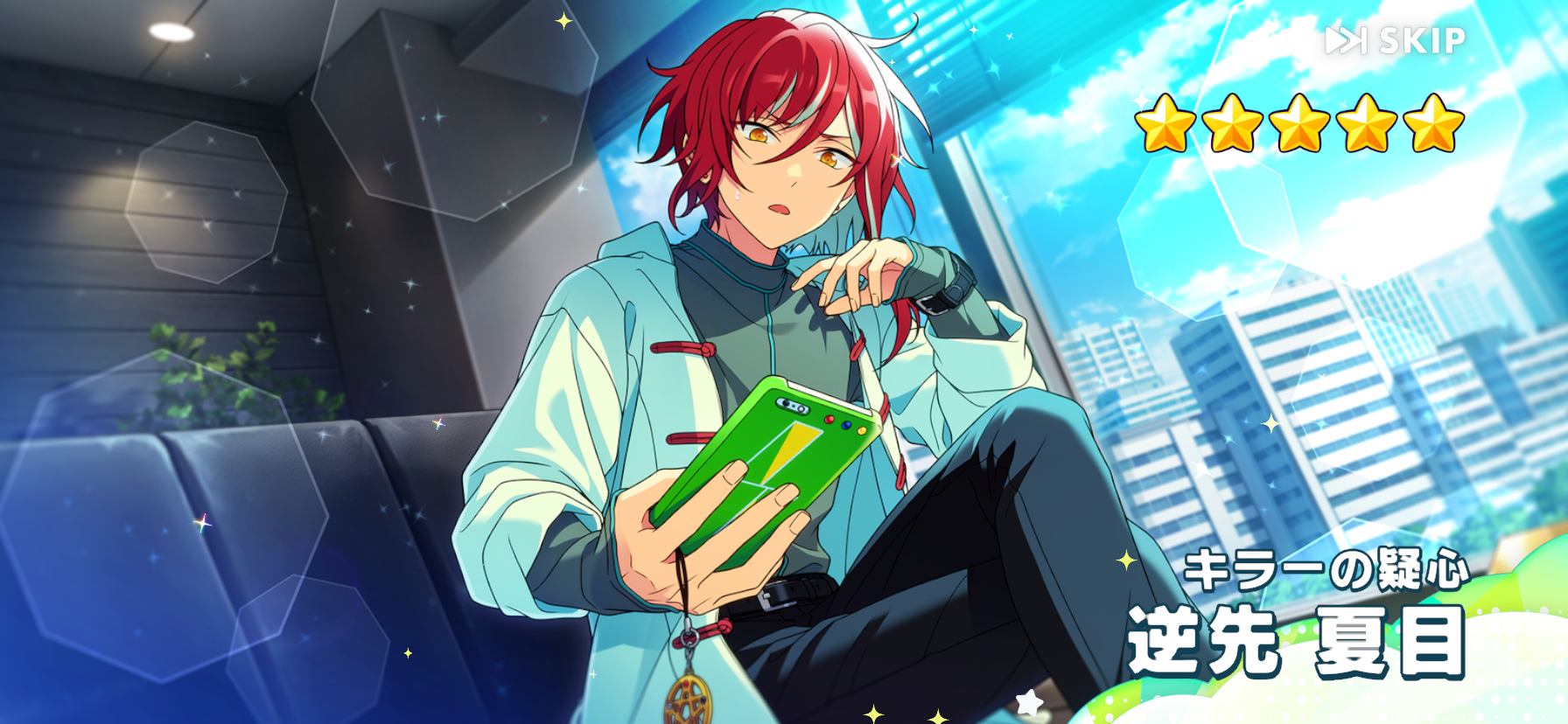 好啦老實說是因為黃卡已經有一張滿破ㄌ用不到 在抽卡結果不太理想的情況下也沒打算繼續抽下去抱歉我跟紅心寮超不熟妖精血統+砂寮眼線&厭世眼神