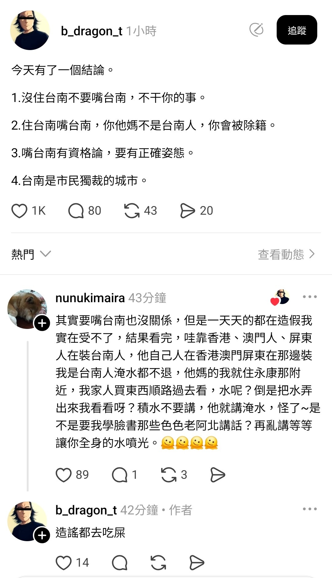 我也不想北部炸掉啊,北部藍白要逃到南部我不願意喔!!這種窮鄉僻壤會不會太委屈高級華人 太委屈!大家都沒有危險不好嗎!