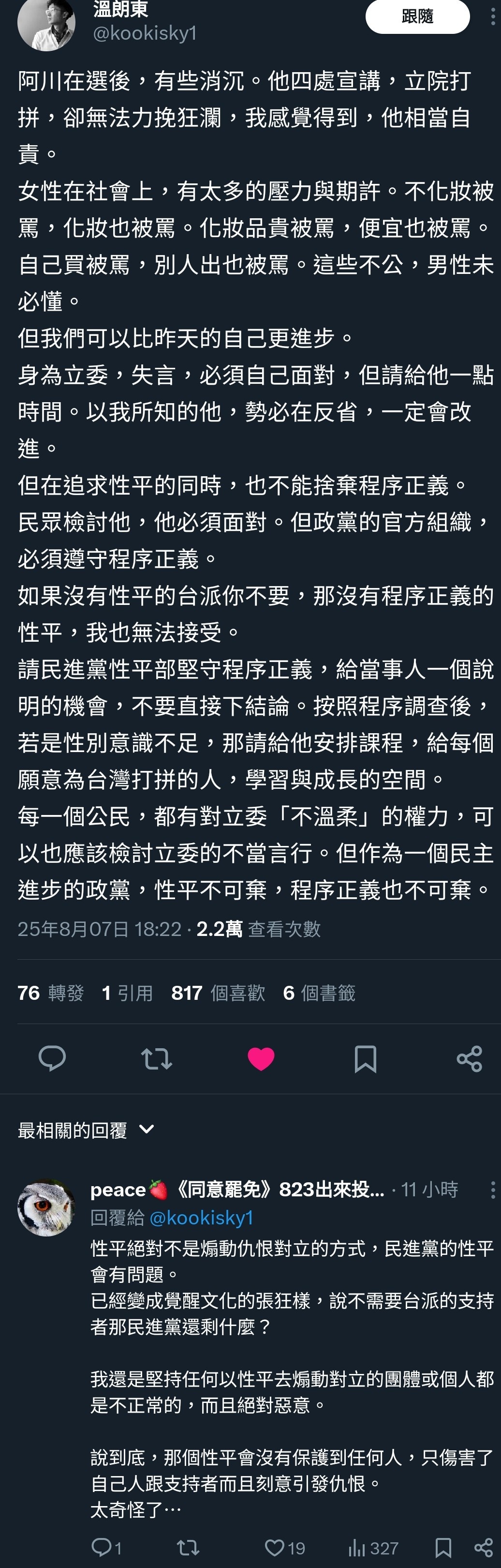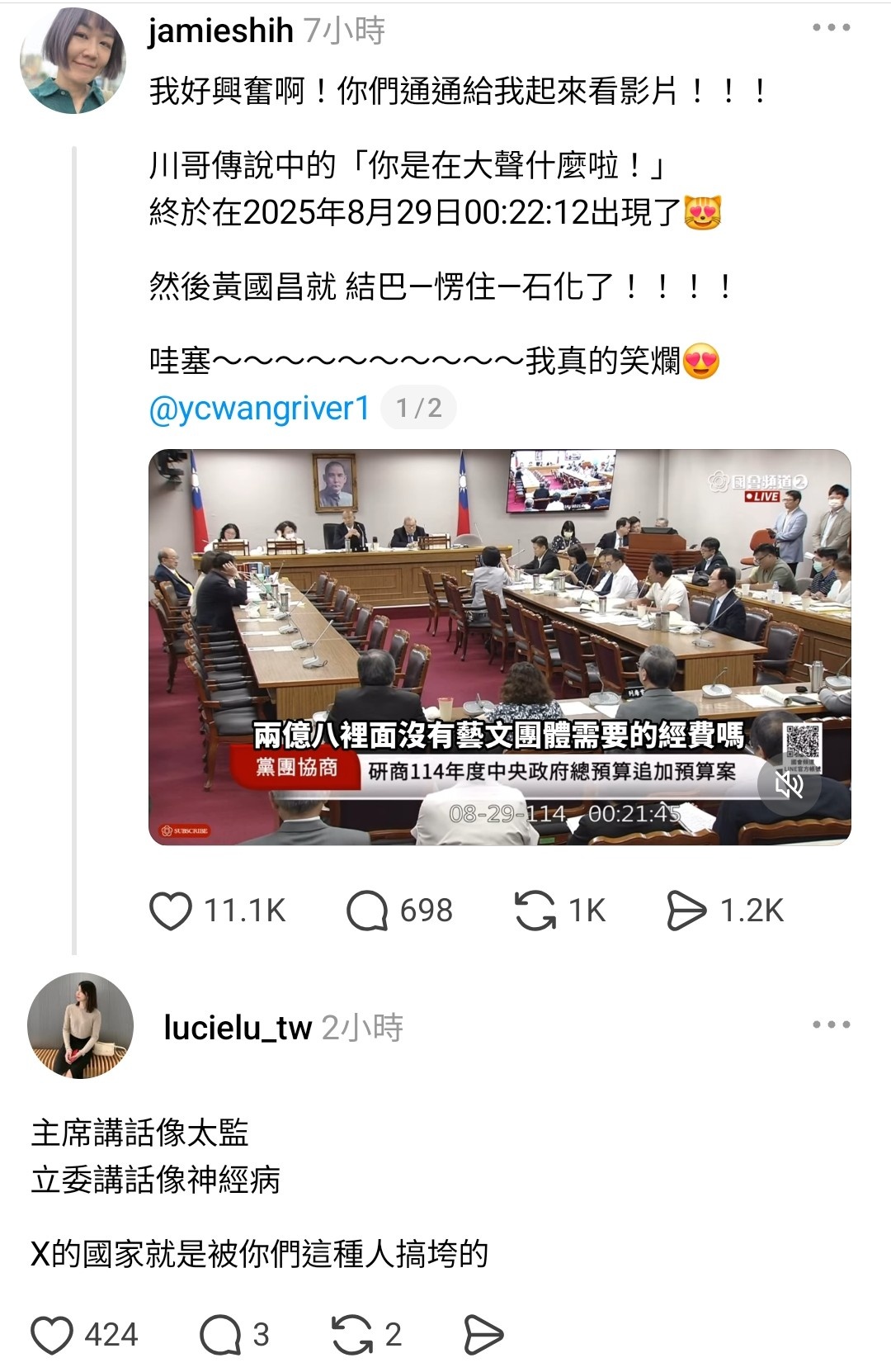 https://images.plurk.com/3YAHHSEiJO73v2fQe4T6Yt.jpg 百年後回考會發現這時代的人喜歡一個講話離不開酒店腔的政治人物,還讓他當上立法院長,可悲。