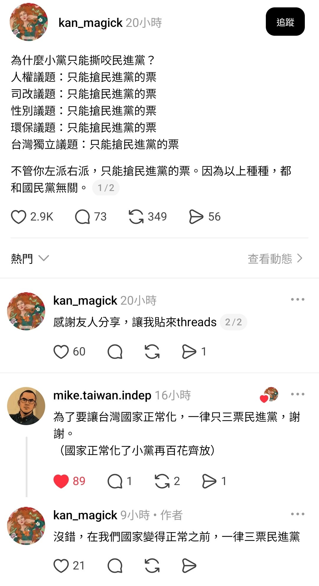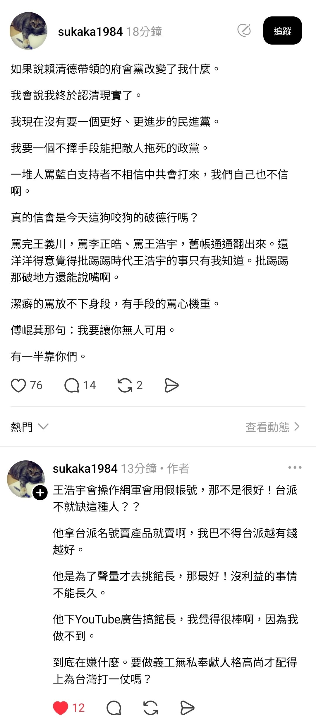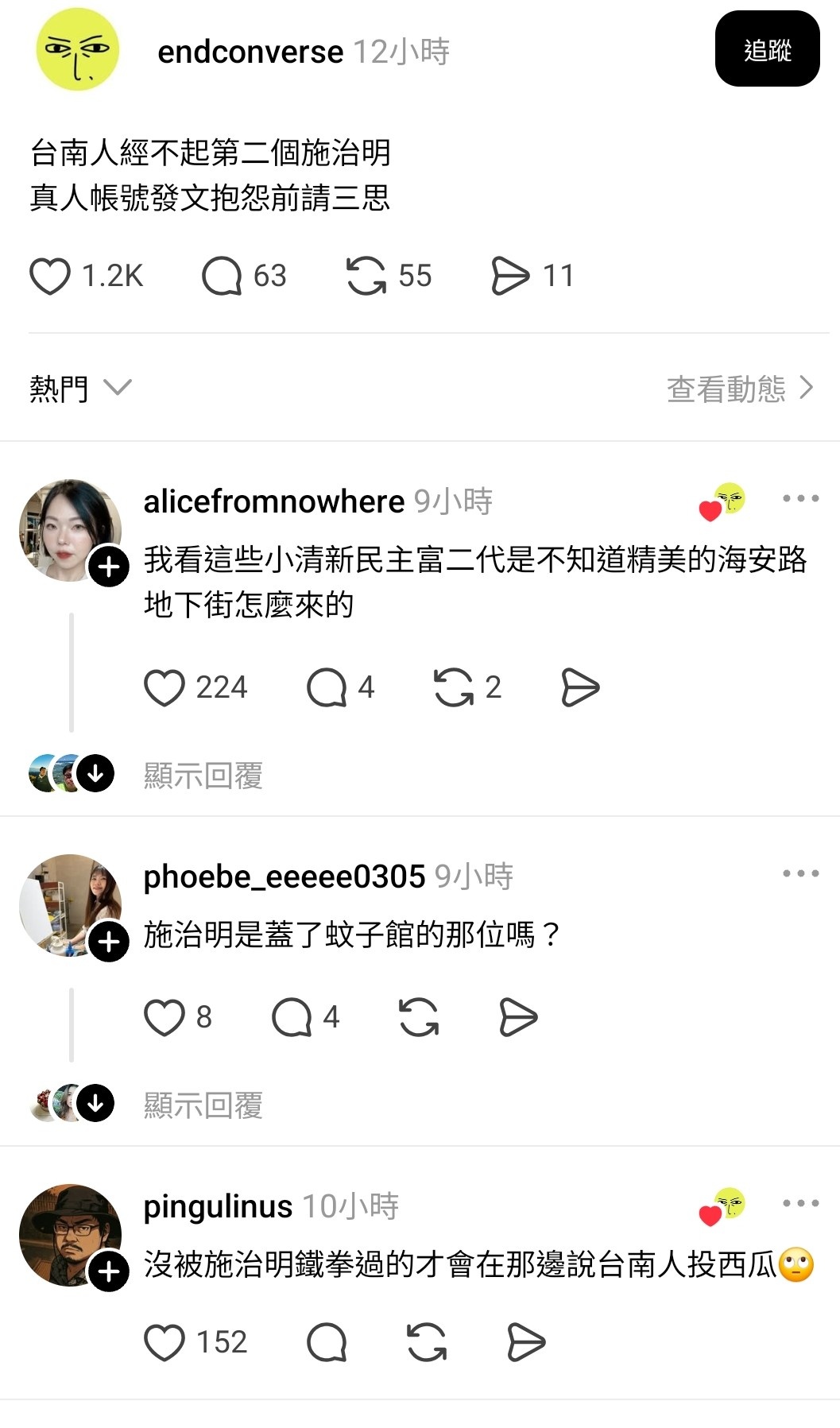 網內互打欸國民黨開心死。有些人真的有夠煩,動不動就在這個我不要那個我不要,最好都要照他的做。真的該出現時人咧,票咧。