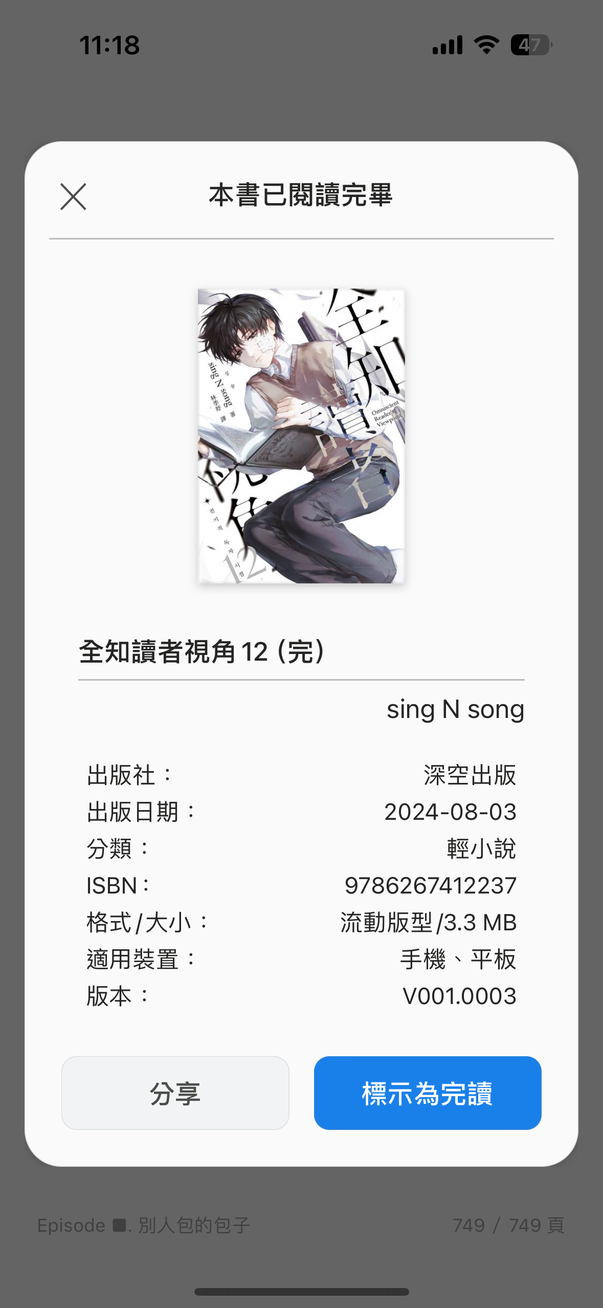 但果然還是看得我眼前花亂,我還記得其中一個晚上我已經沒辦法再讓眼睛對焦在手機的電子書頁上,所有字都糊散開來,彷彿我也身處在那個故事構成的世界裡。