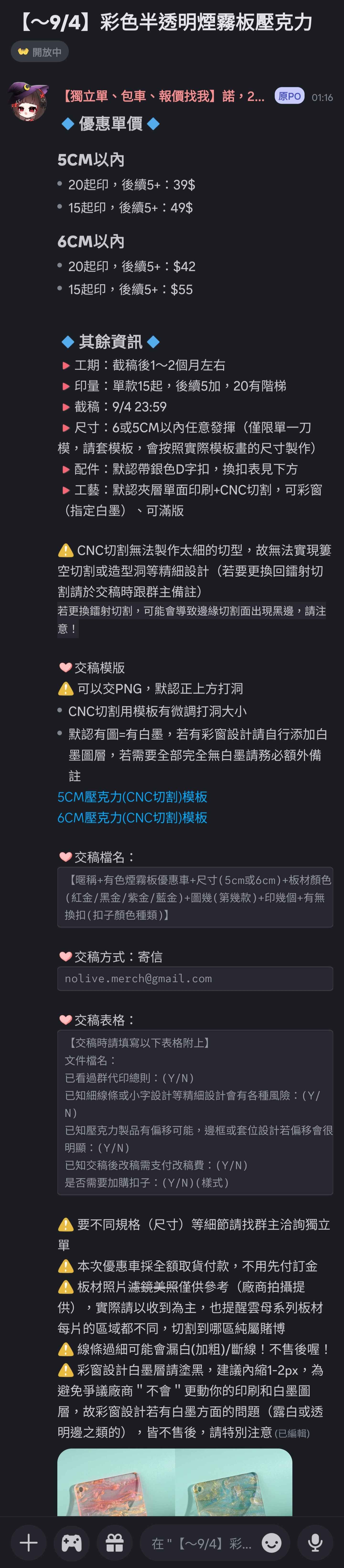 (含壓克力製品注意事項,請務必詳閱~圖為Discord群貼文截圖)