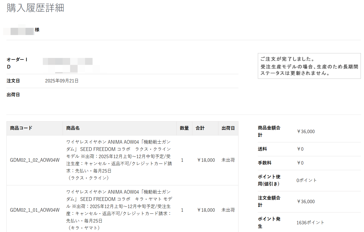 : 已下單~