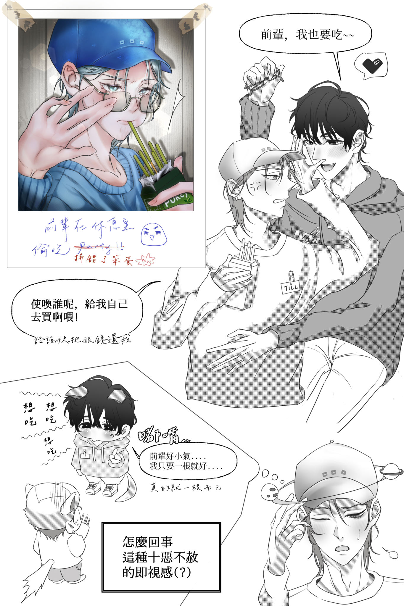 一直很喜歡巧克力棒的梗,好甜好少女(猝不及防"前輩在休息室偷吃趴踢!!"一句失速撞進我腦袋