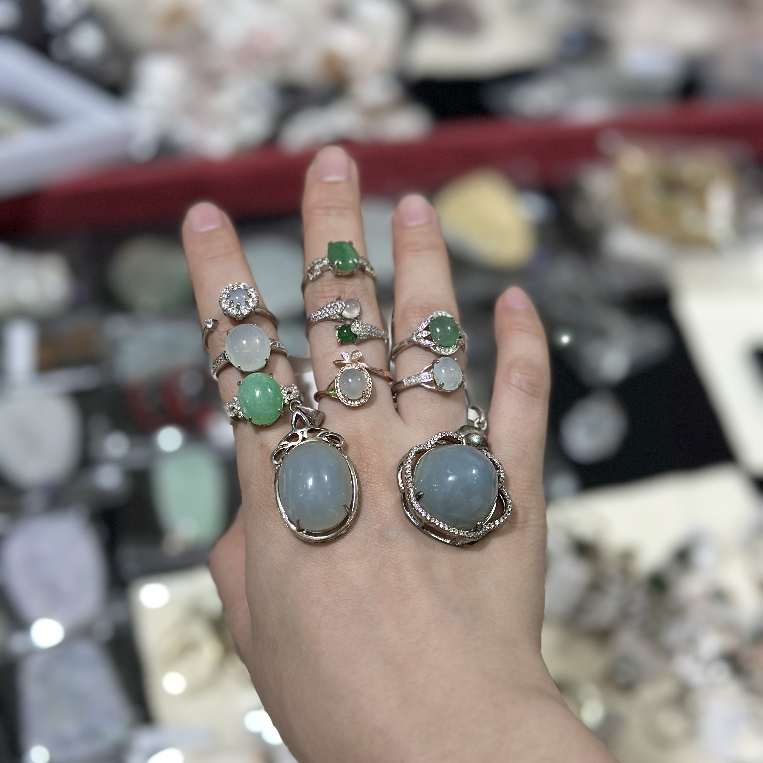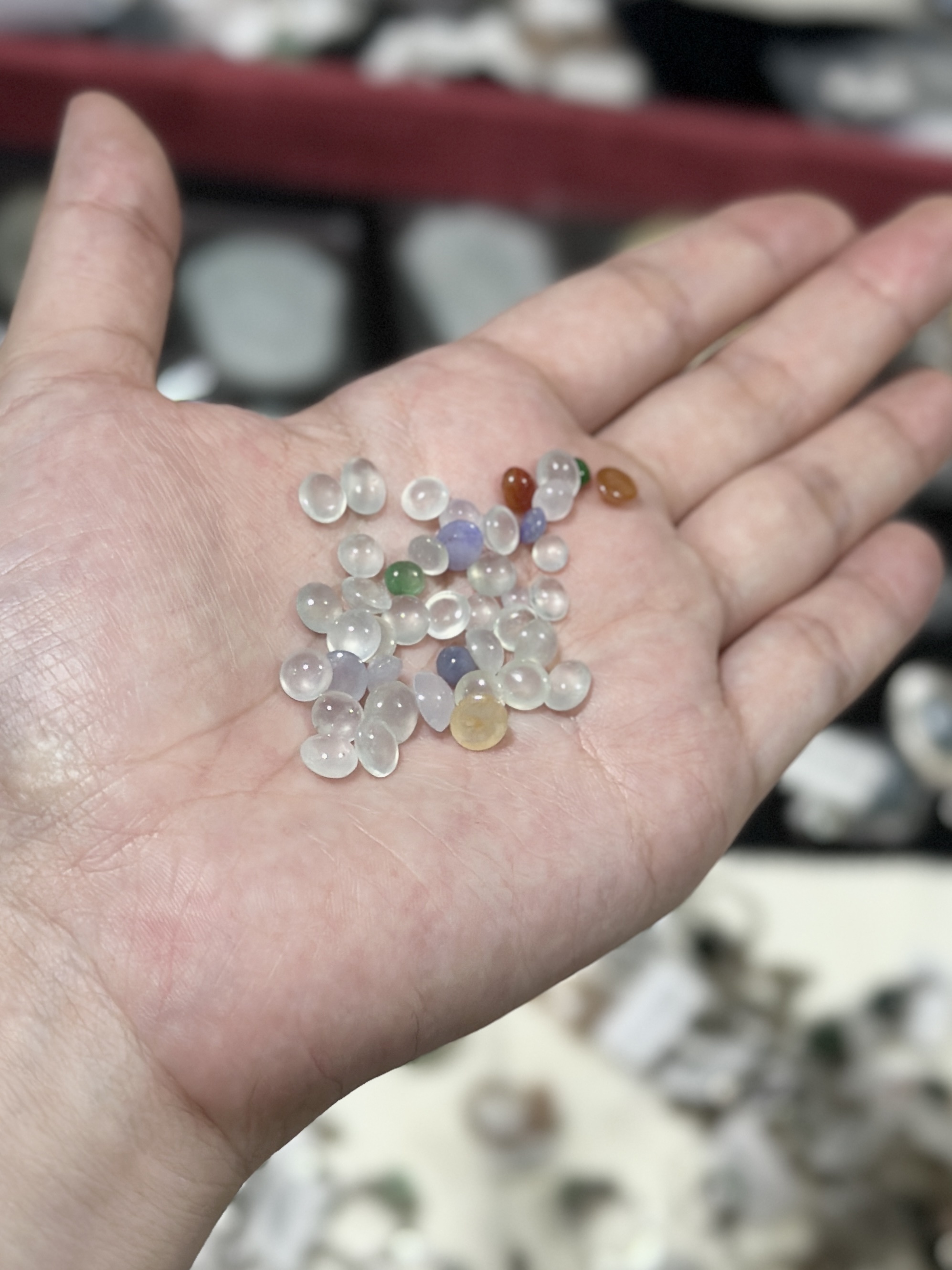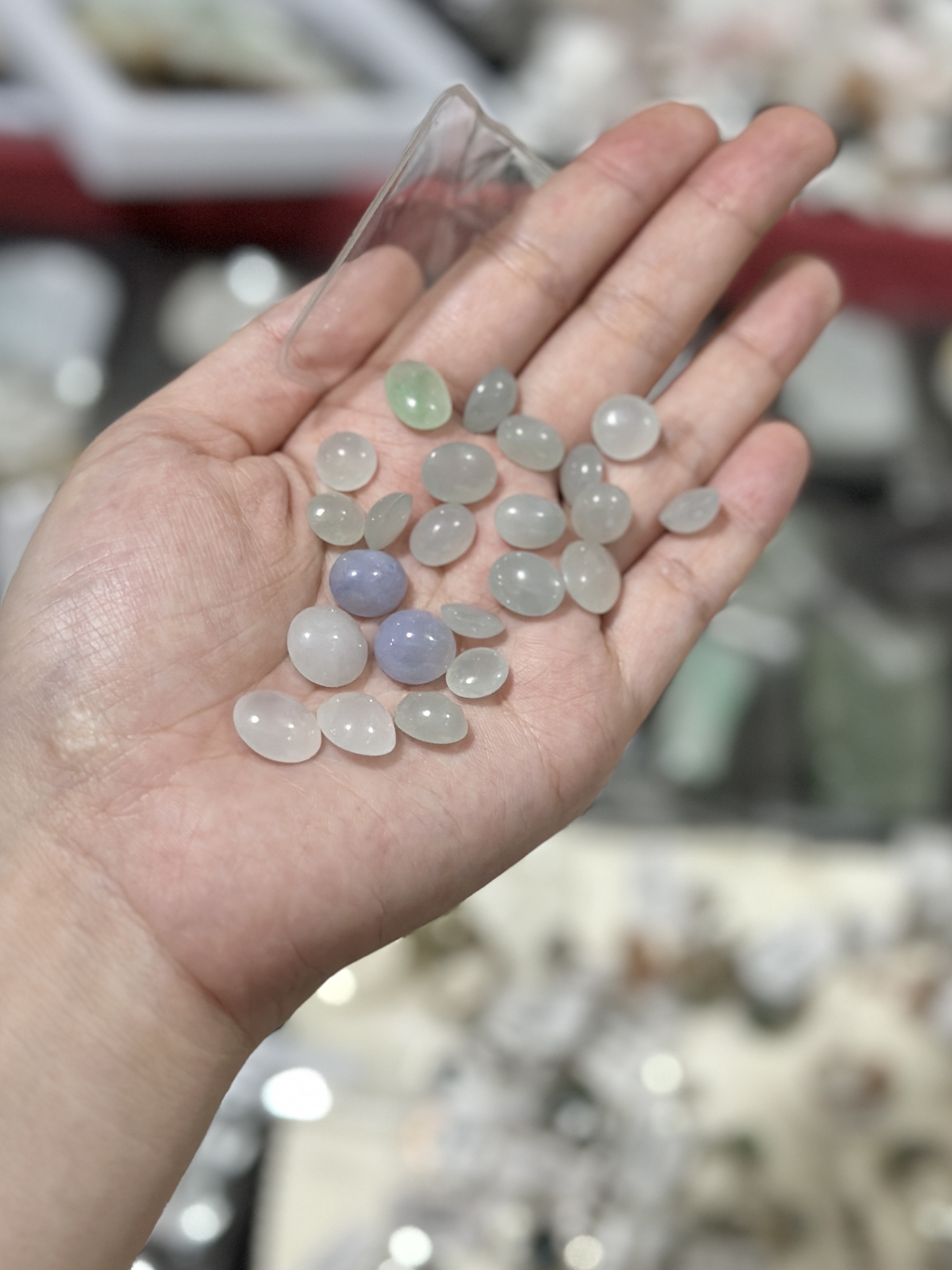 今天被叫去看貨,短時間看了幾百件翡翠蛋面、擺件跟其他裸石,剛剛才被放出來,已經不能說是養眼了