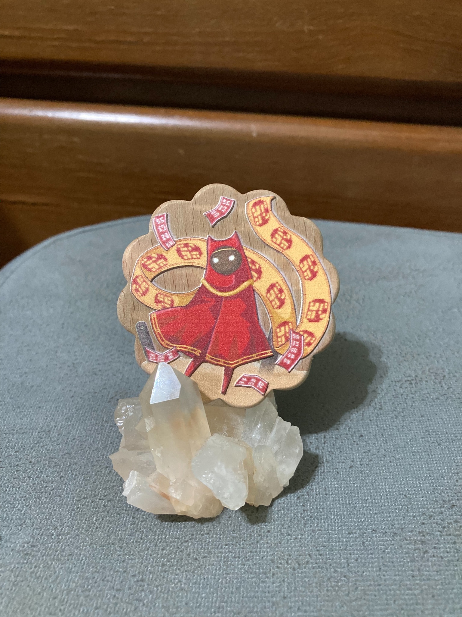 木頭雕刻,背後是大夾子,量少,是我自己印爽的,圖片是請Phenan畫的,木頭紋理各有不同,所以個別可能會有些許色差跟紋理不一樣