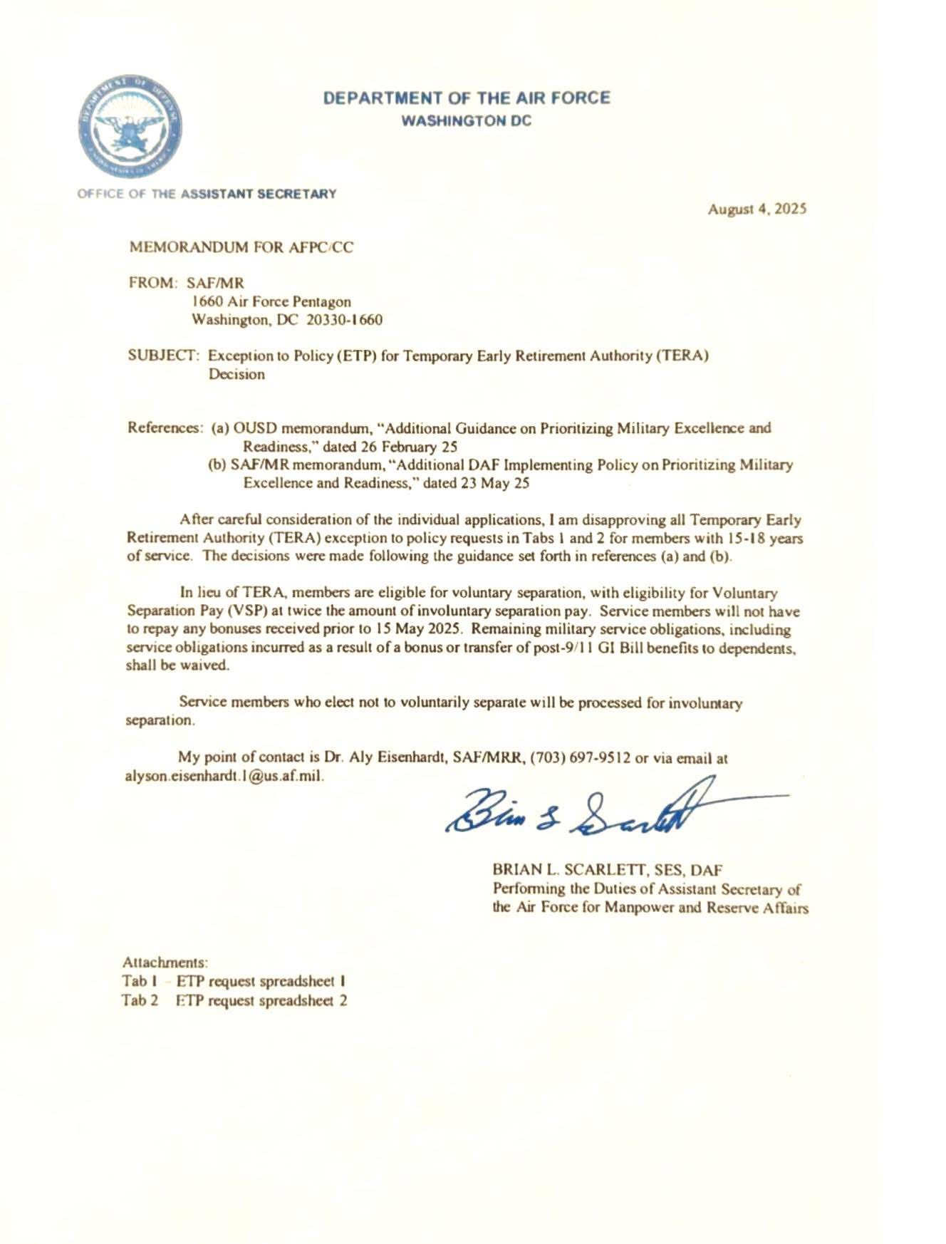 usairforce 違背了自己的價值觀,撕毀了已經為滿足所有標準和要求的人批准的退休令。
