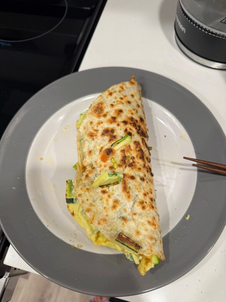 順便放一下昨天晚餐的節瓜乳酪絲蛋餅,整條節瓜在裡面捲不起來,變成大taco..