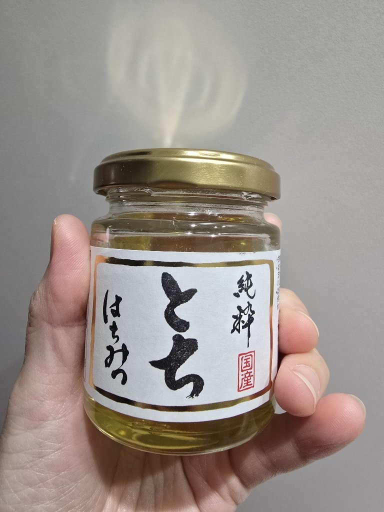 最右邊那個原來是岩手縣的栃木蜜啊,顏色很淡是特徵,我嚐第一口的感覺是,怎麼那麼甜,害我嚇了一跳。查資料說濃郁的甜味中帶點微酸微苦,是獨特的好味道,我女兒泡成蜂蜜水的時候說有點苦,居然是真的