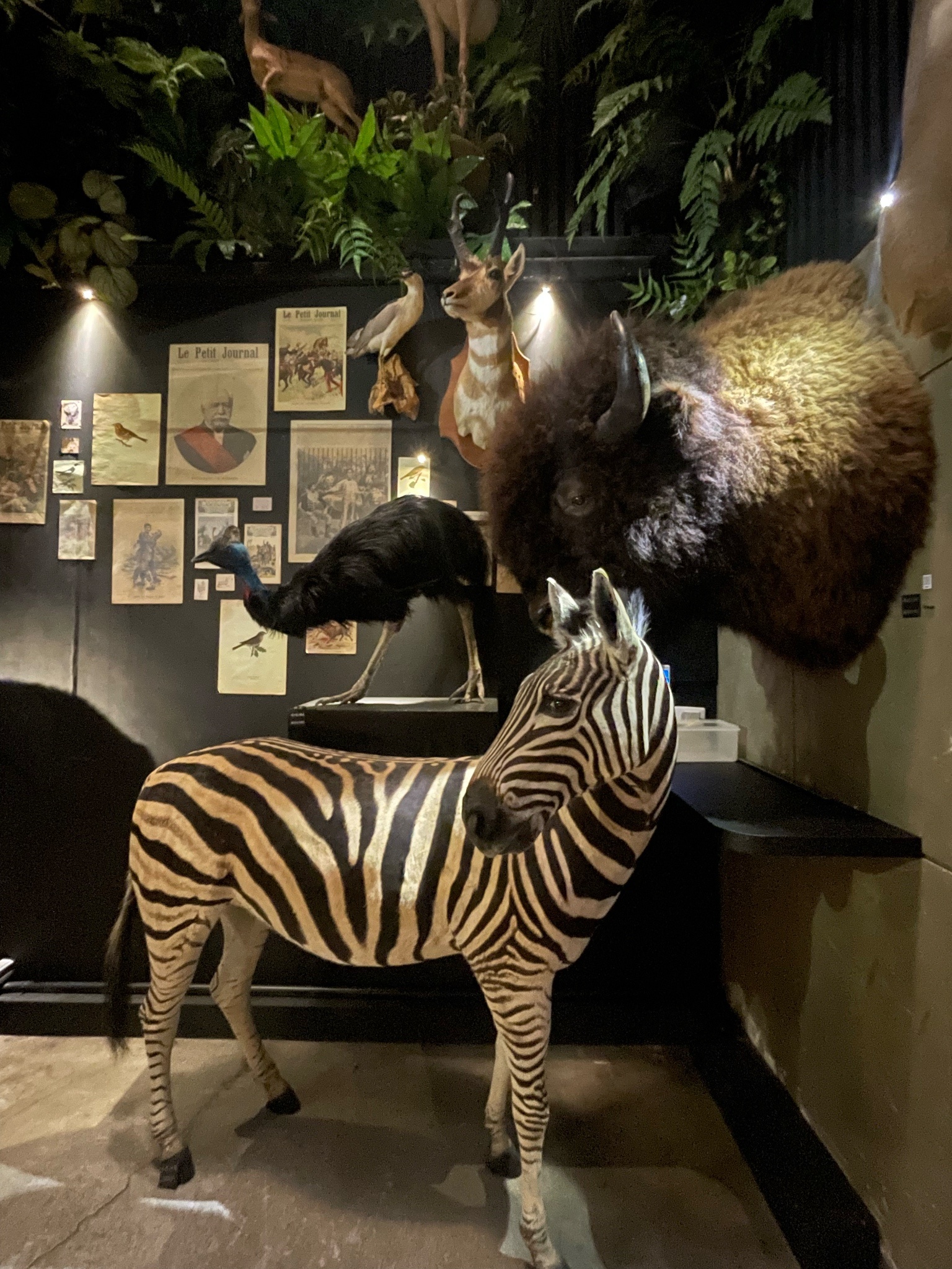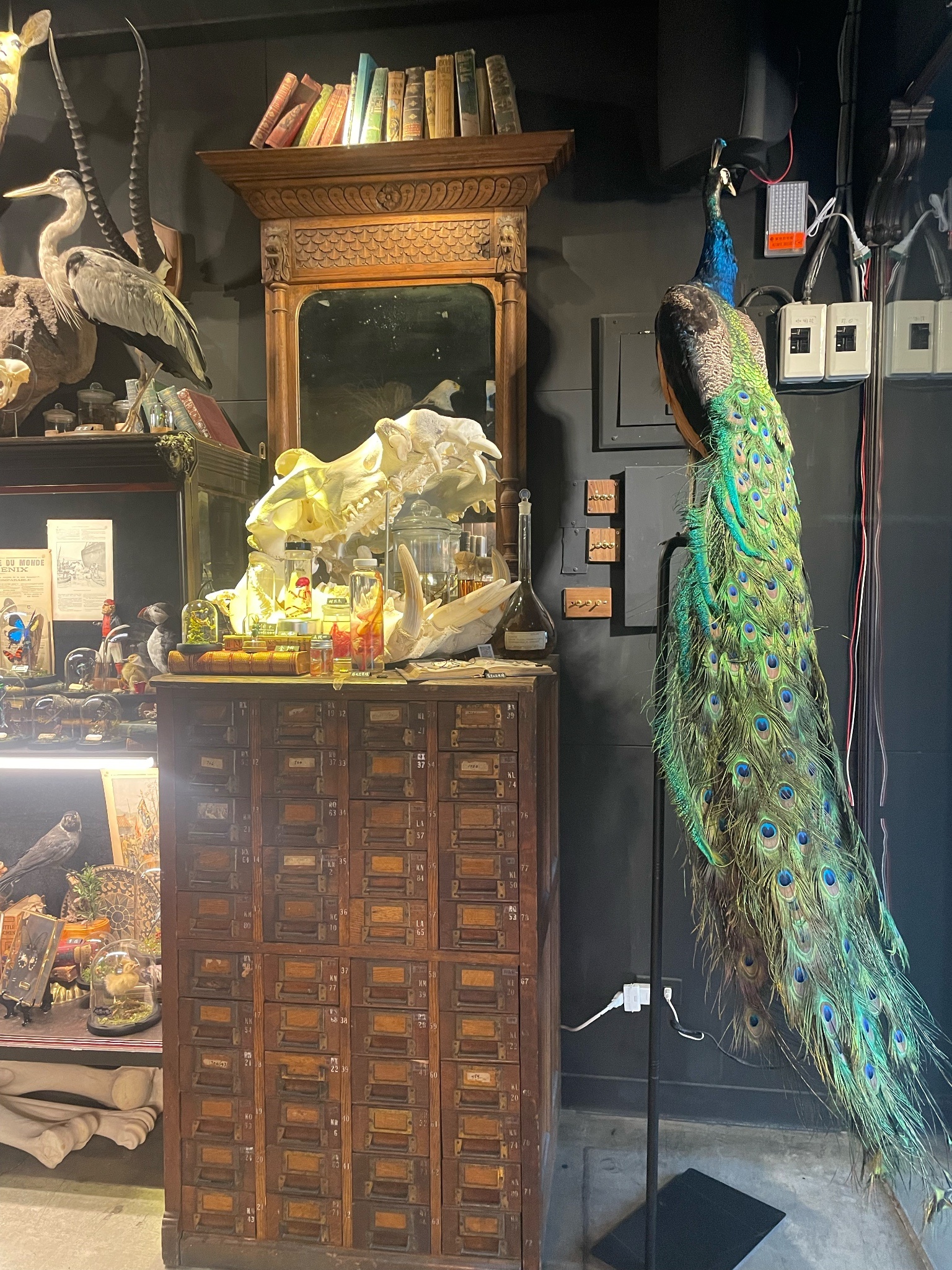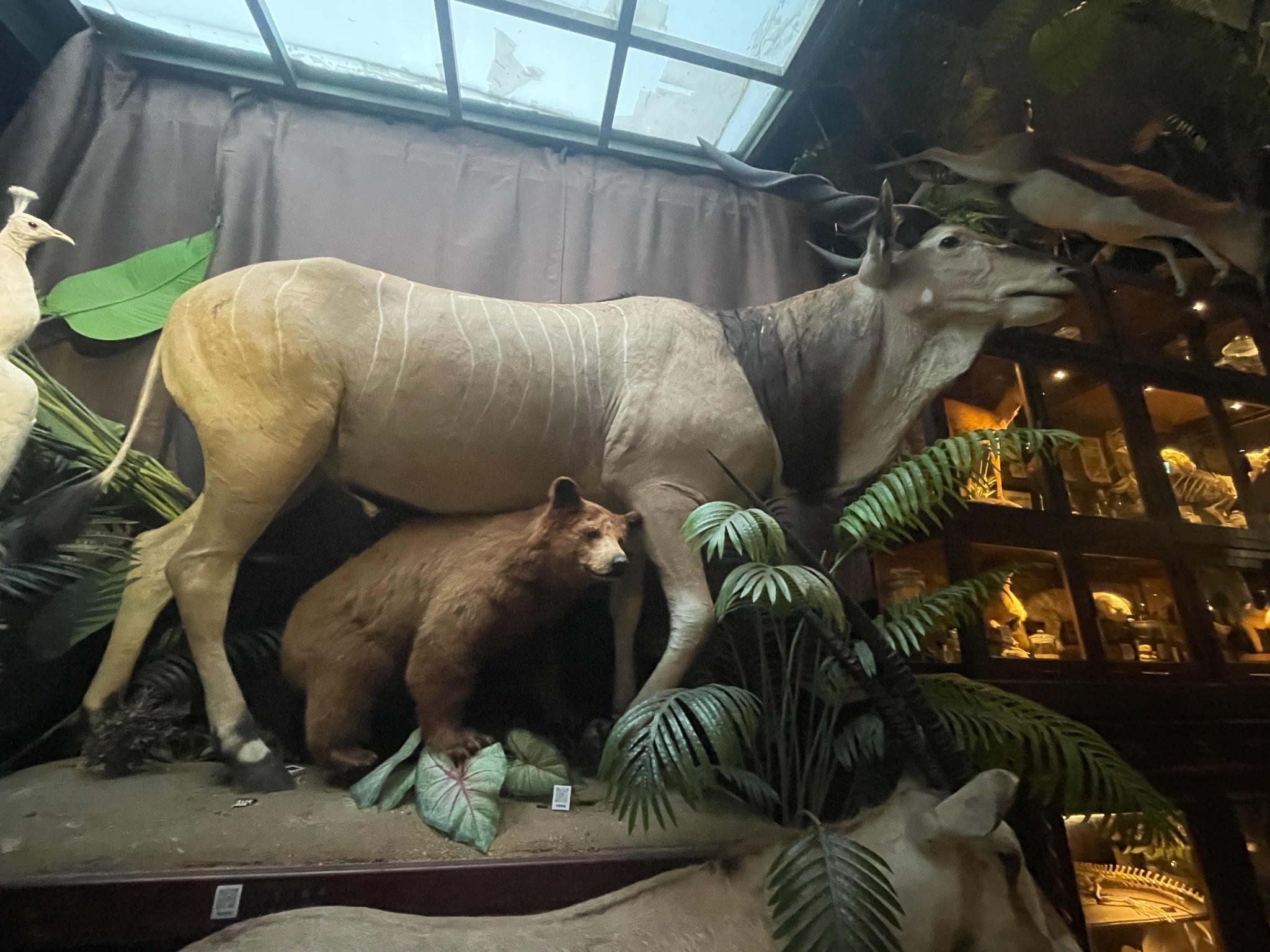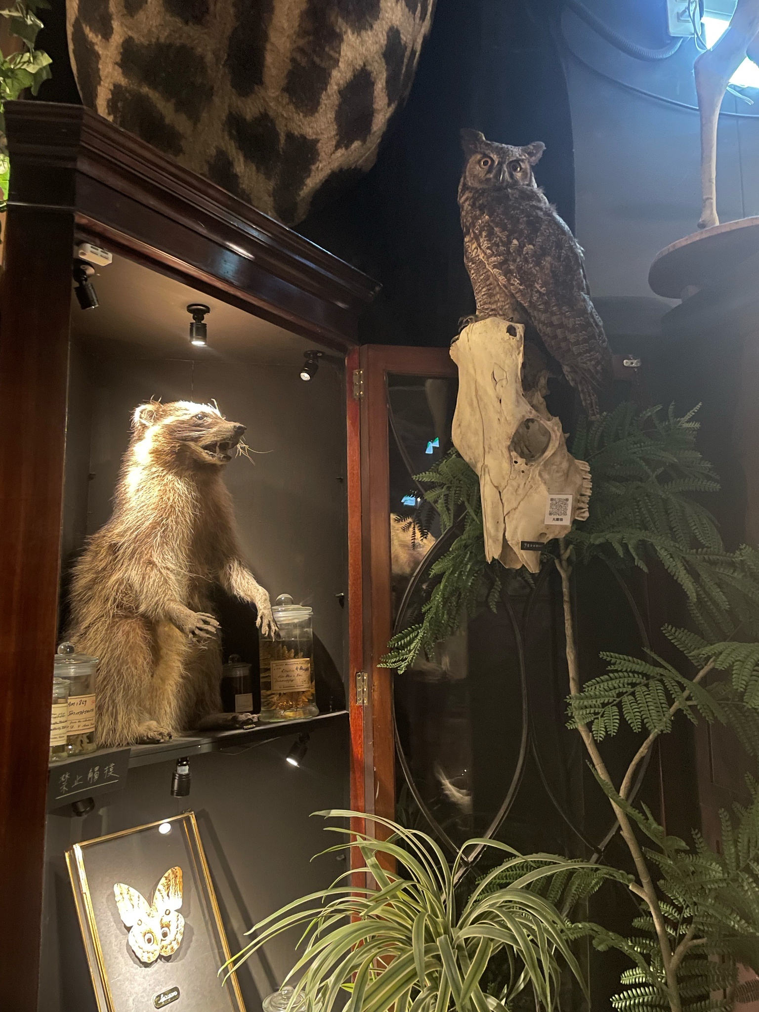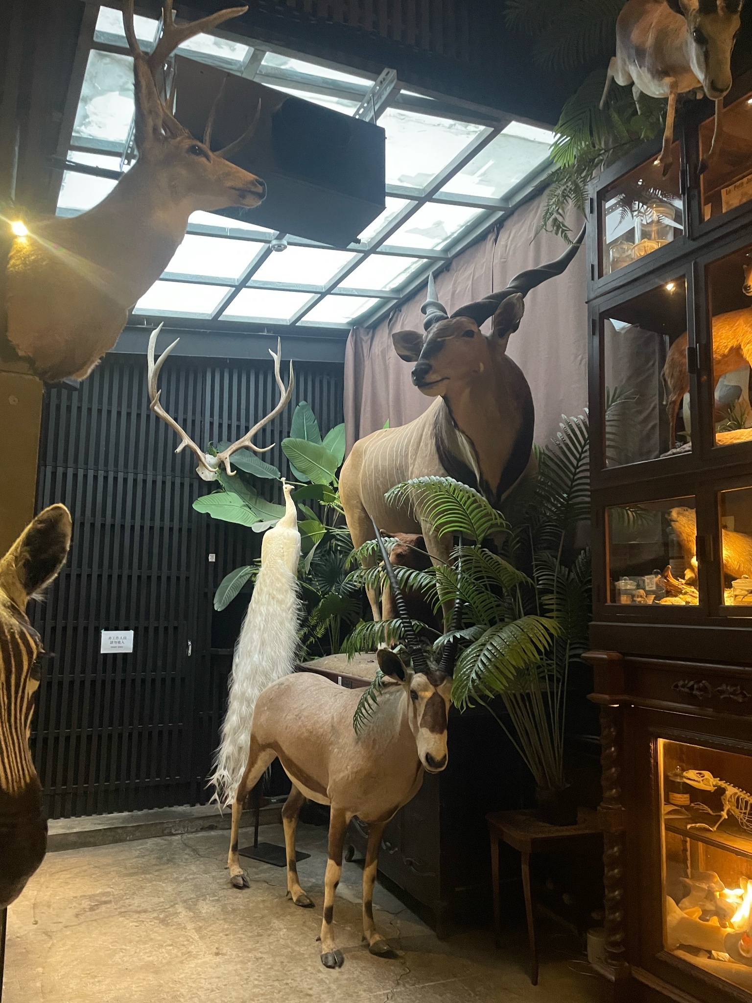 很有趣的標本店,有收費100元的內部空間(可以折抵消費),嚴格來說空間不大,但營造的很精緻,美國野牛、德氏巨羚、長頸鹿真的超巨大!我覺得標本的特色就是可以體驗那個「尺寸」。音樂很迷幻,也增加了氣氛。